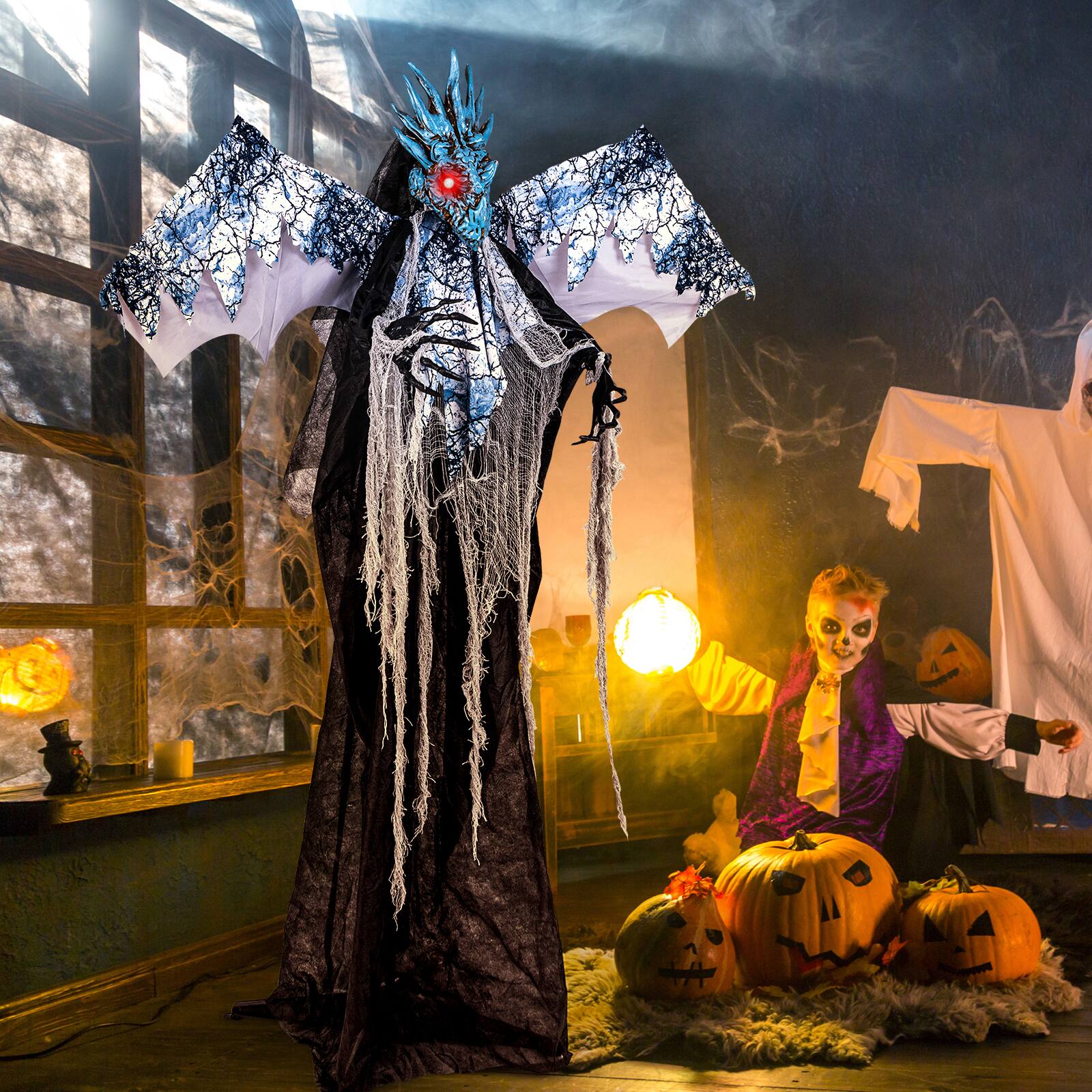 - A:Answer This Halloween decoration requires minimal assembly, taking less than five minutes to set up.
