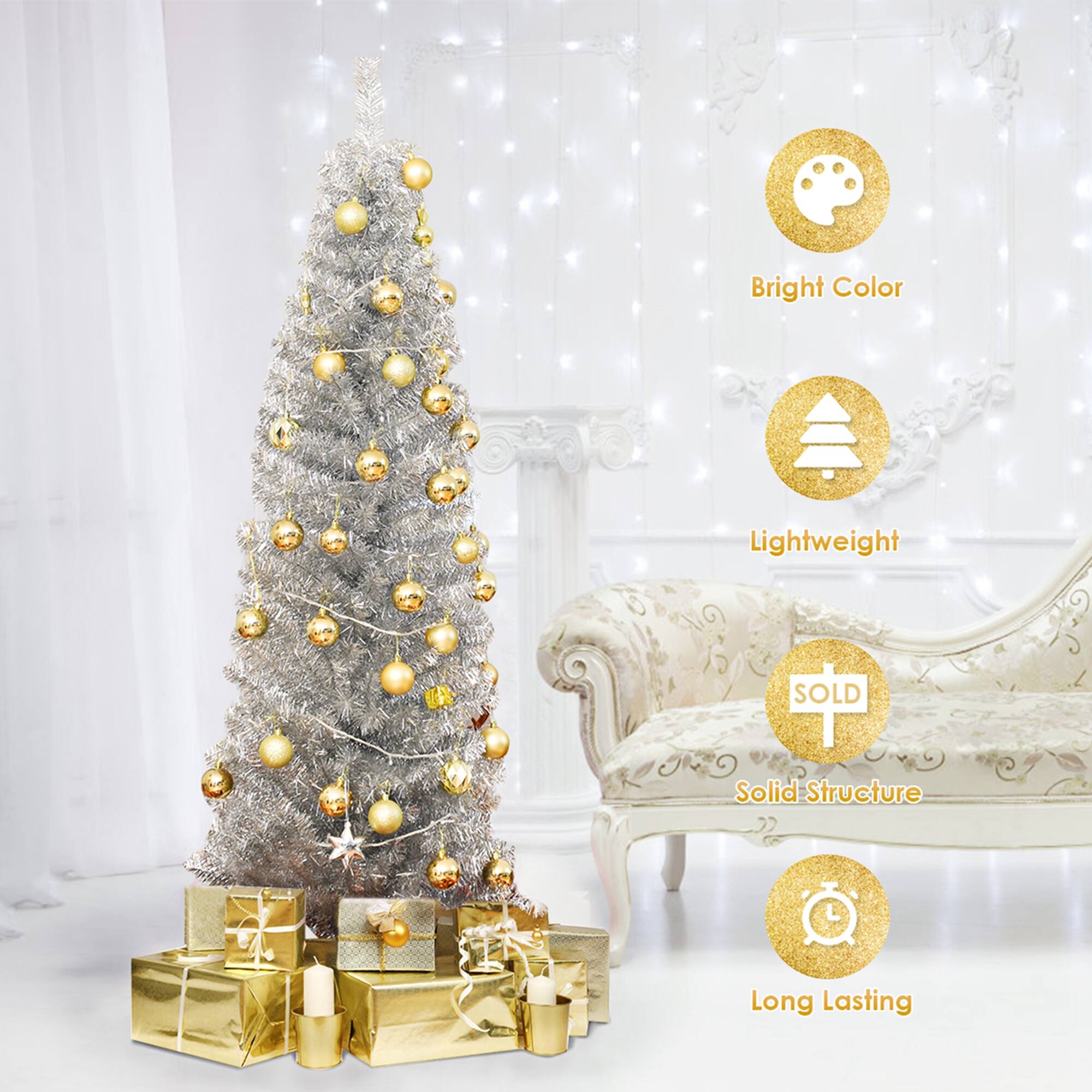 - A:Answer This Christmas tree has a slim pencil shape.