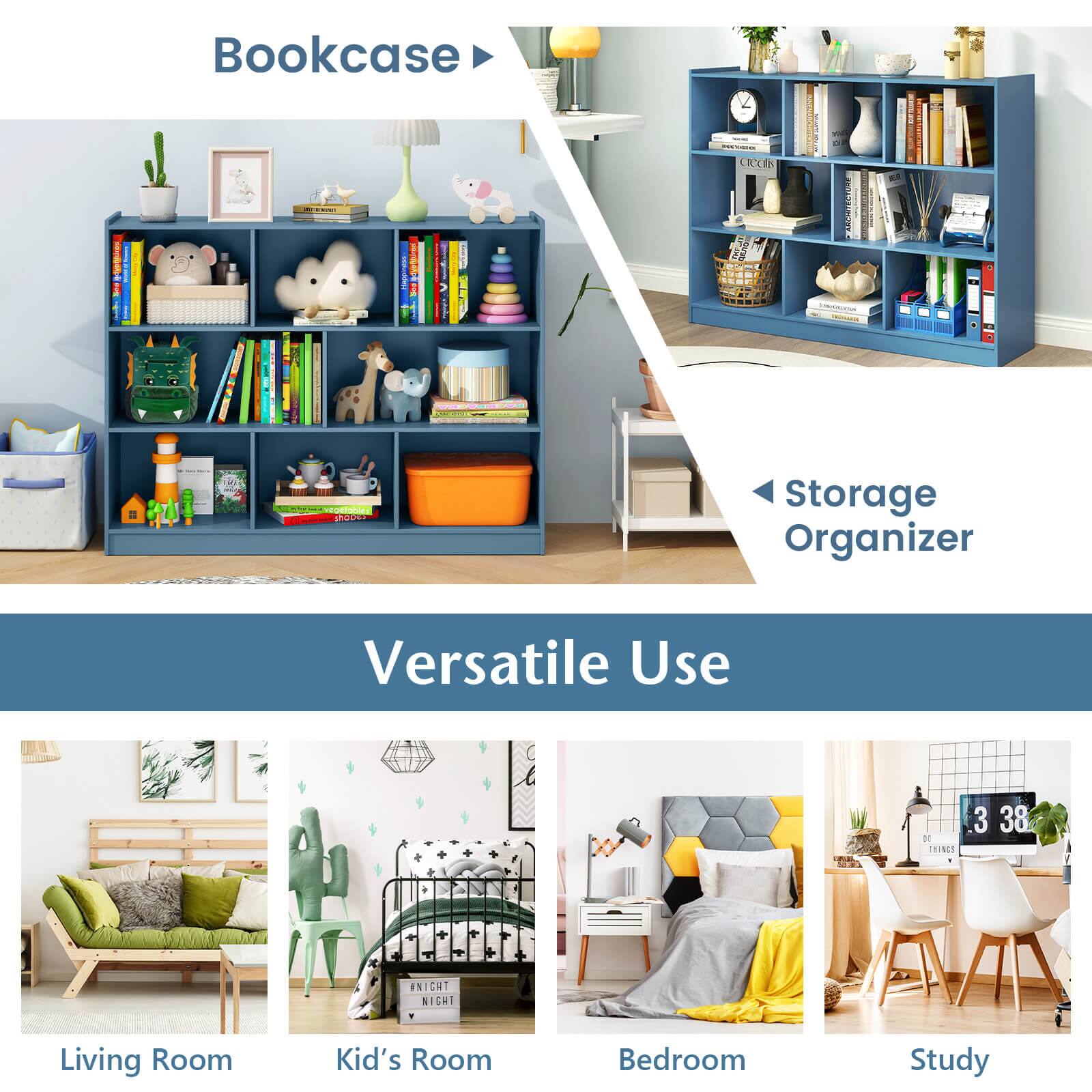- A:Answer This bookcase has a total of 9 shelves.