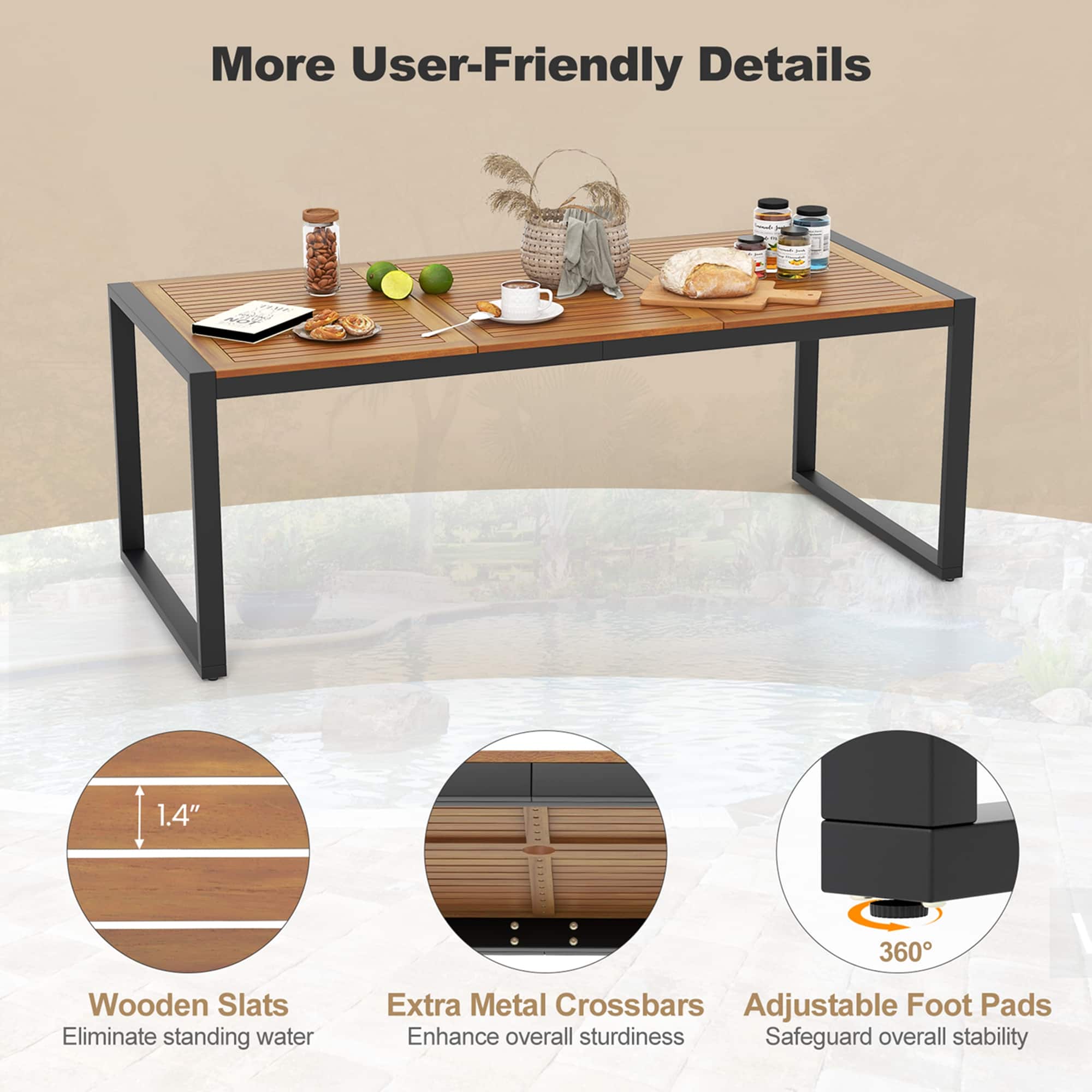- A:Answer This patio dining set is crafted from solid acacia wood, fade-resistant PE rattan, and a heavy-duty metal frame.