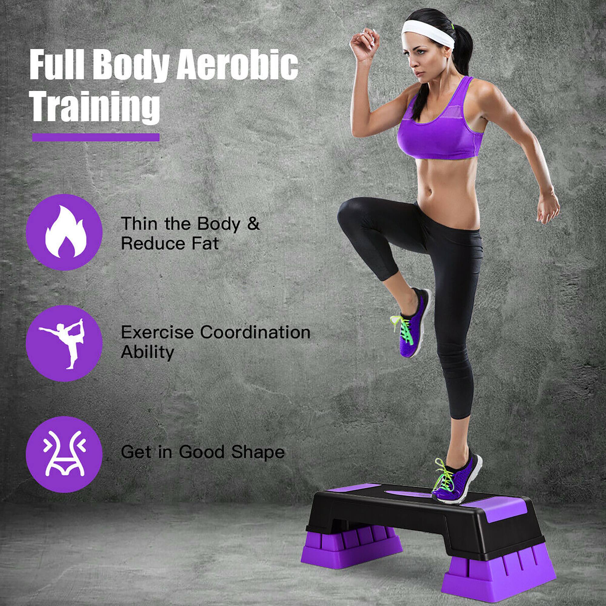 - A:Answer The aerobic stepper has three adjustable height levels at 5, 7, and 9 inches.