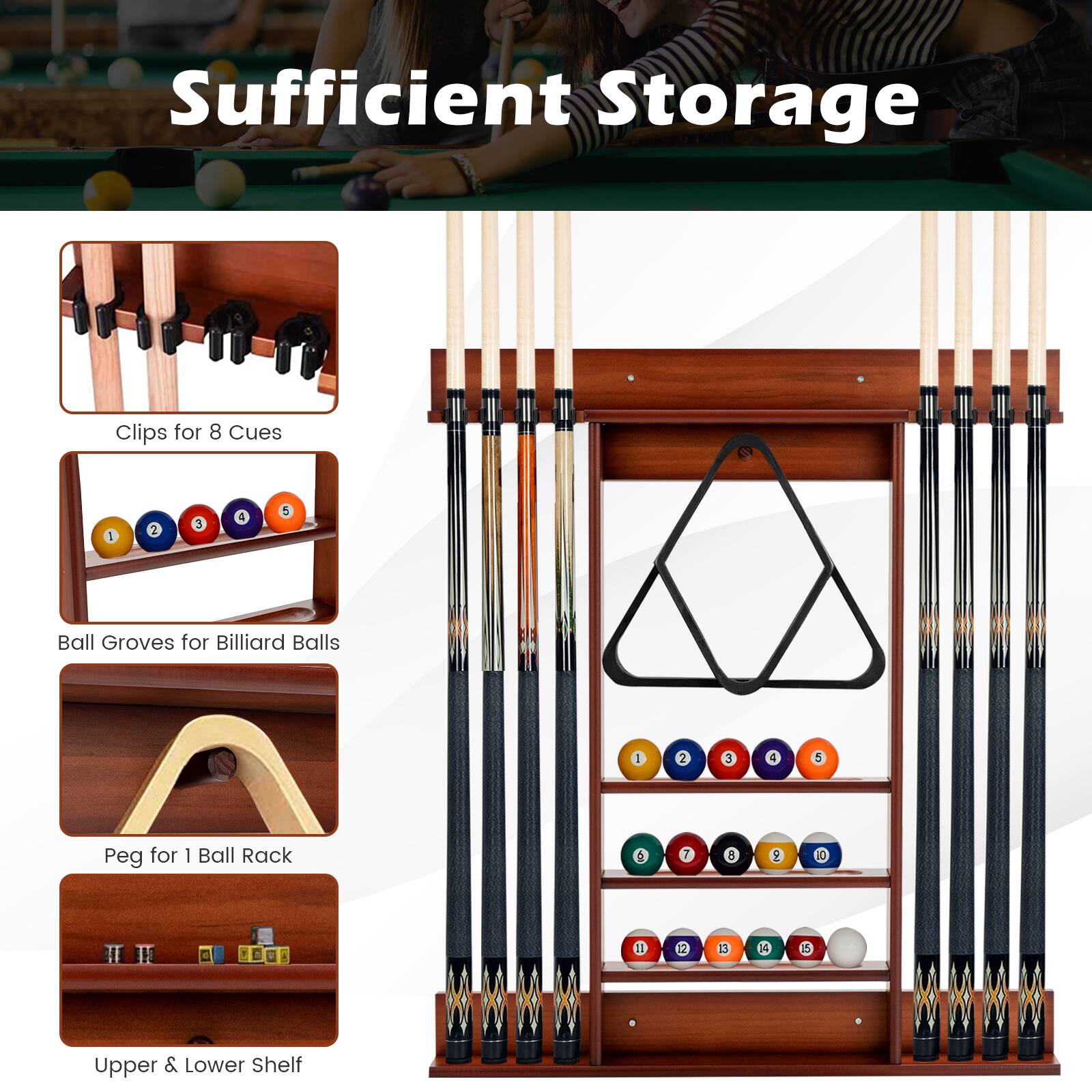 - A:Answer This cue stick holder is made of selected pine wood.