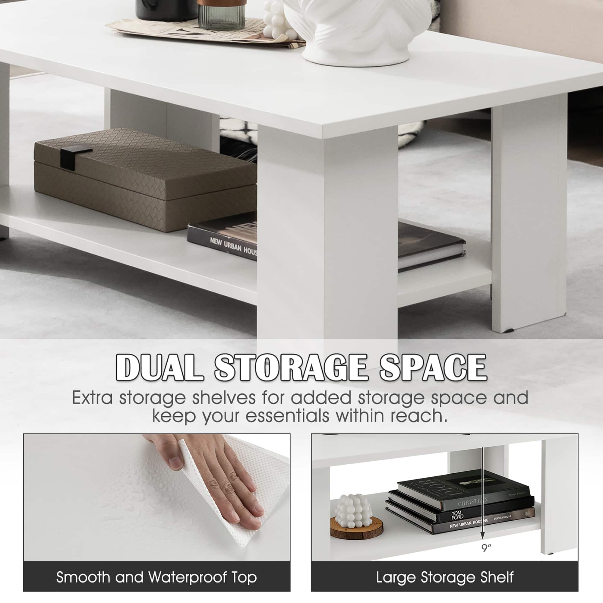 - A:Answer The open shelf on the coffee table provides extra storage space for items like snacks, magazines, game consoles, and stereos.