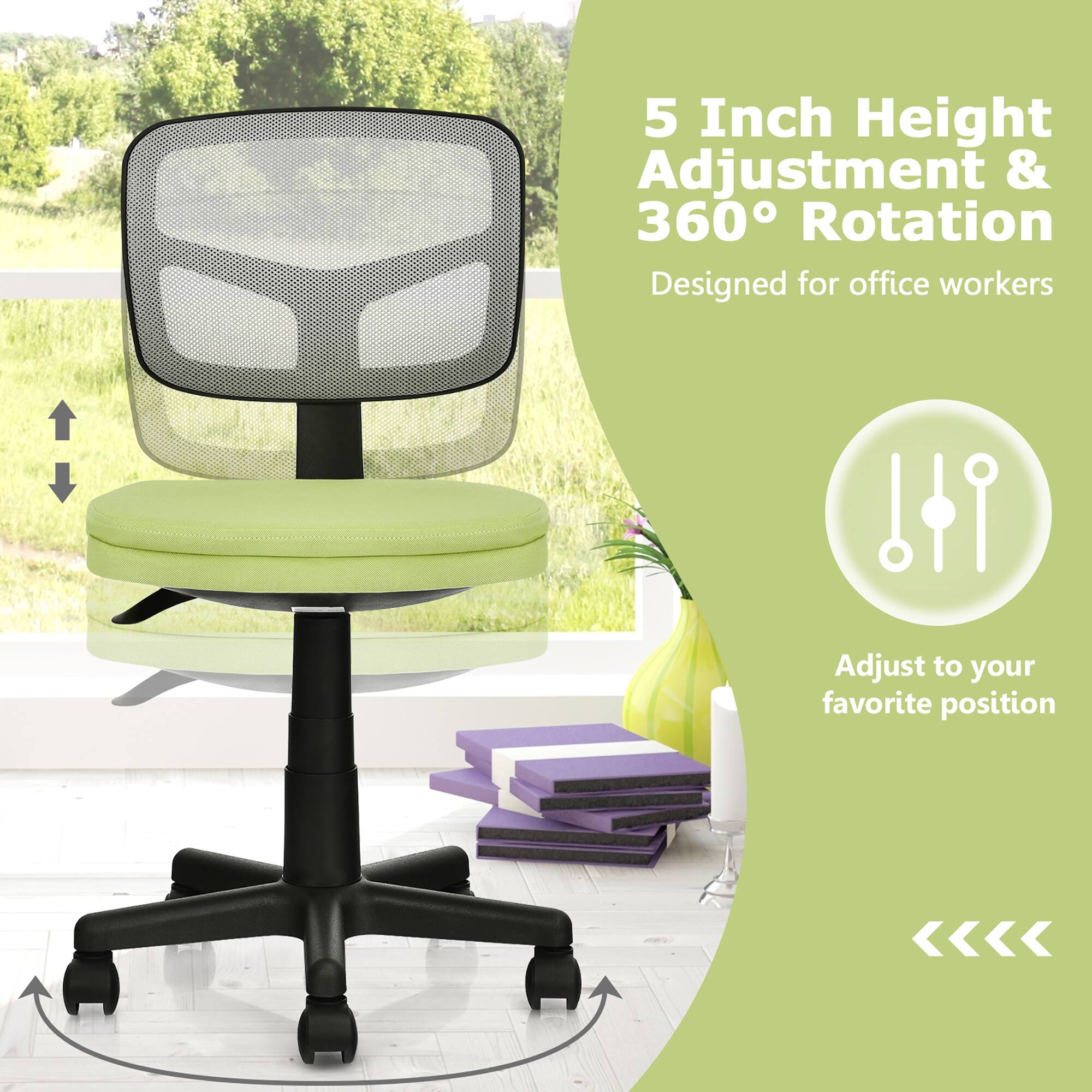 This question was asked about the related product: Costway - Computer Mesh Armless Office Chair with Adjustable Swivel - Black