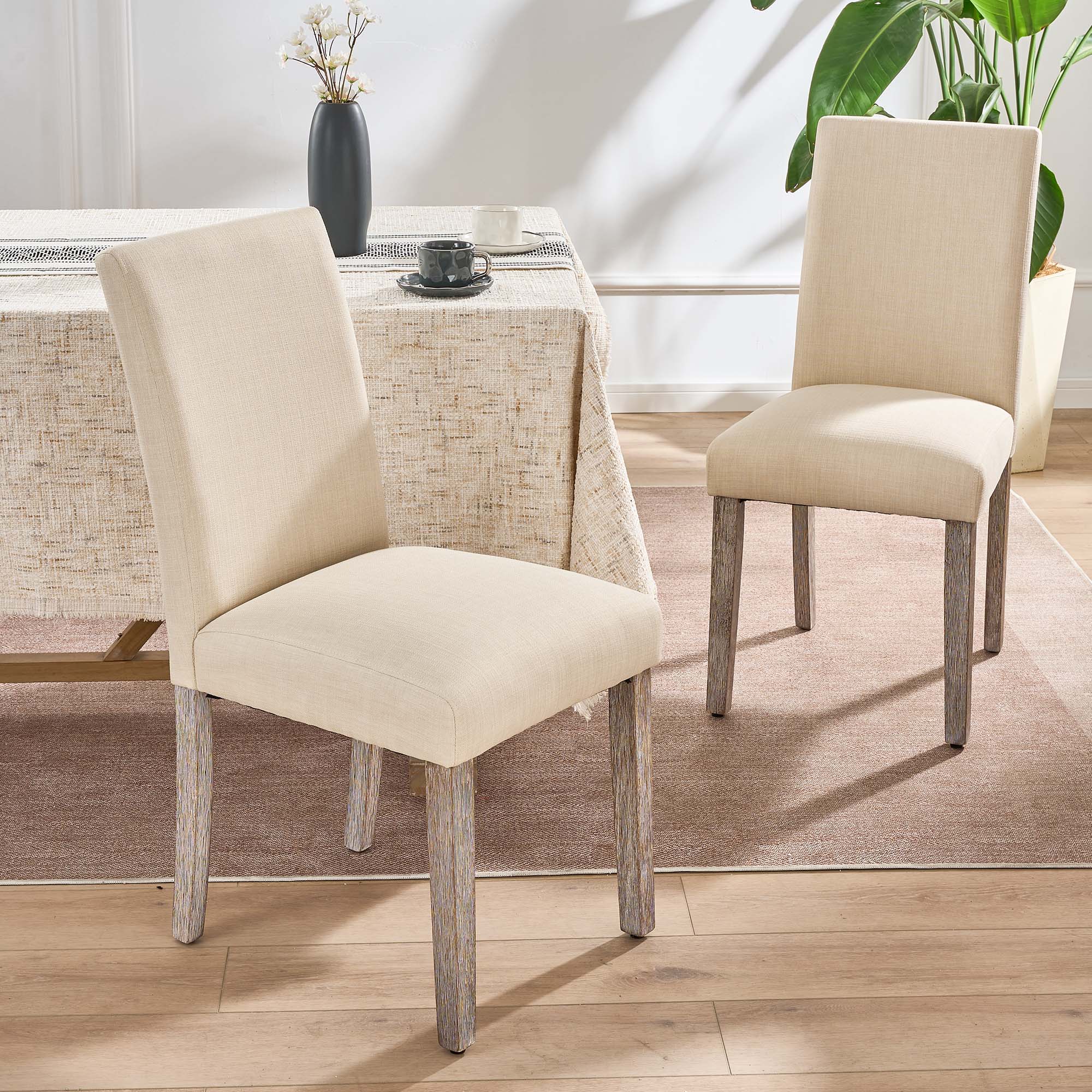 - A:Answer The chairs have a foam-padded seat covered with PU leather or linen fabric and an ergonomically designed backrest for a comfortable dining experience.