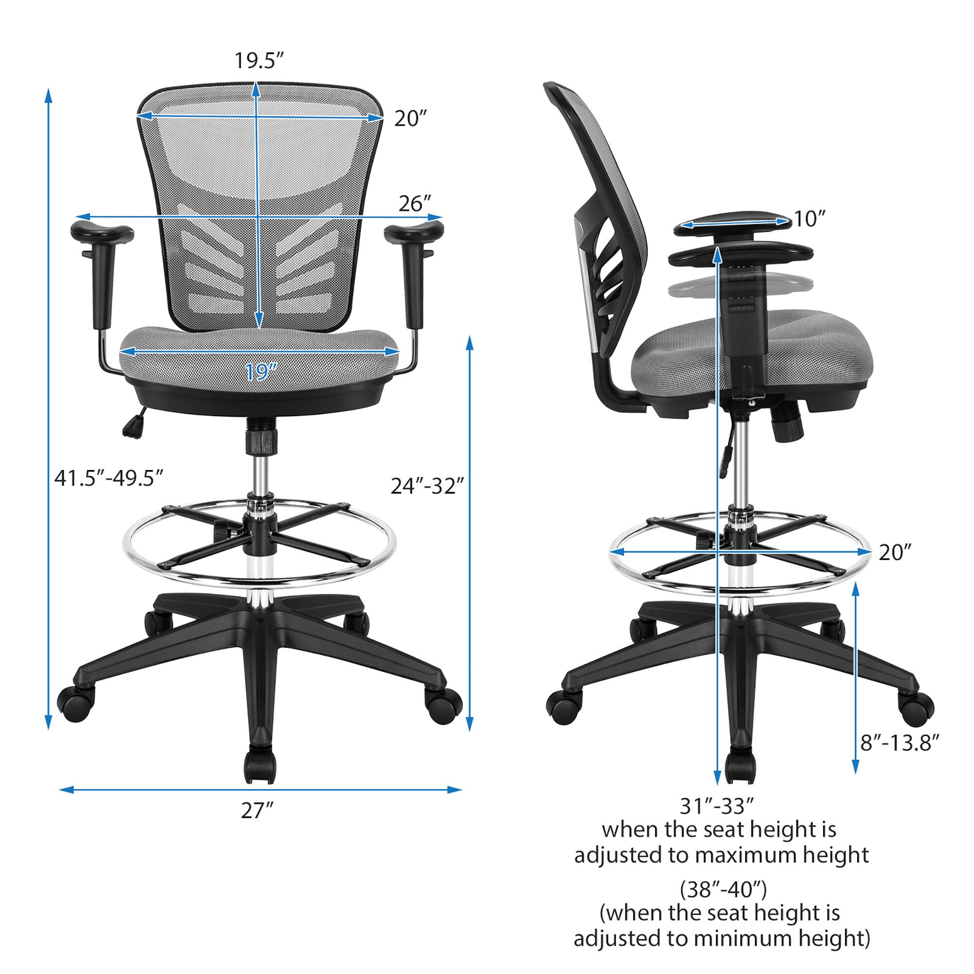 - A:Answer The seat height can be adjusted from 24 inches to 32 inches.