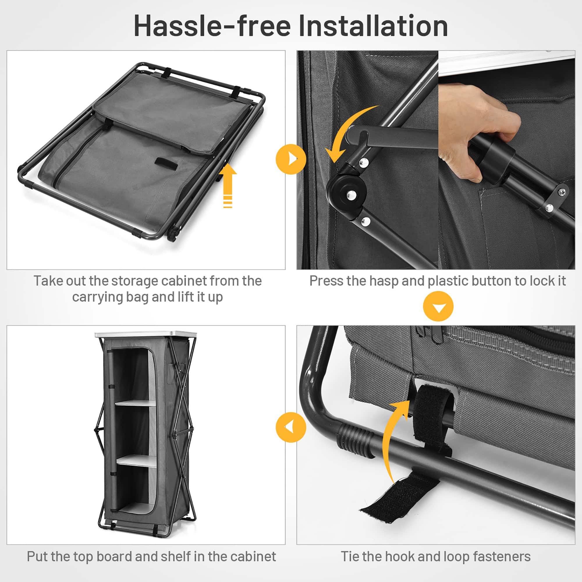 - A:Answer You can set up the cabinet easily within seconds and it's quick to fold together.
