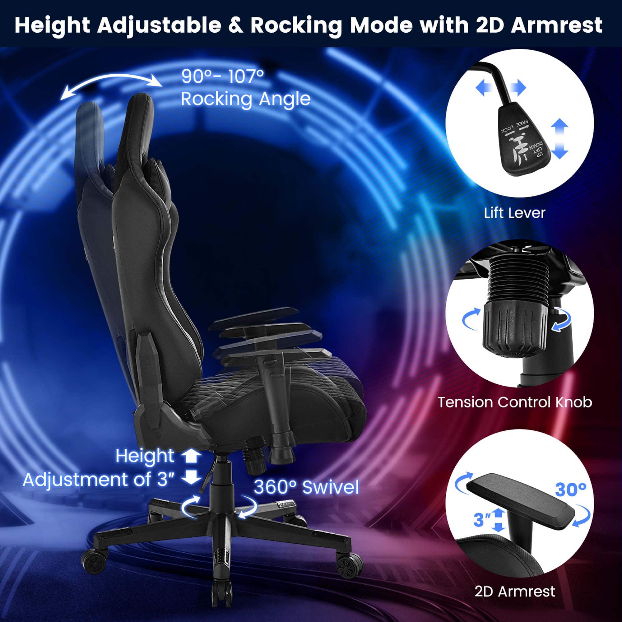 - A:Answer The gaming chair's seat height is adjustable.