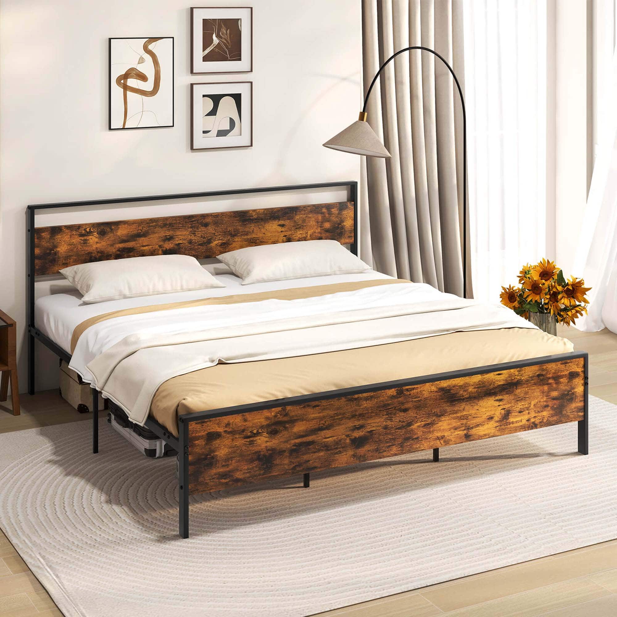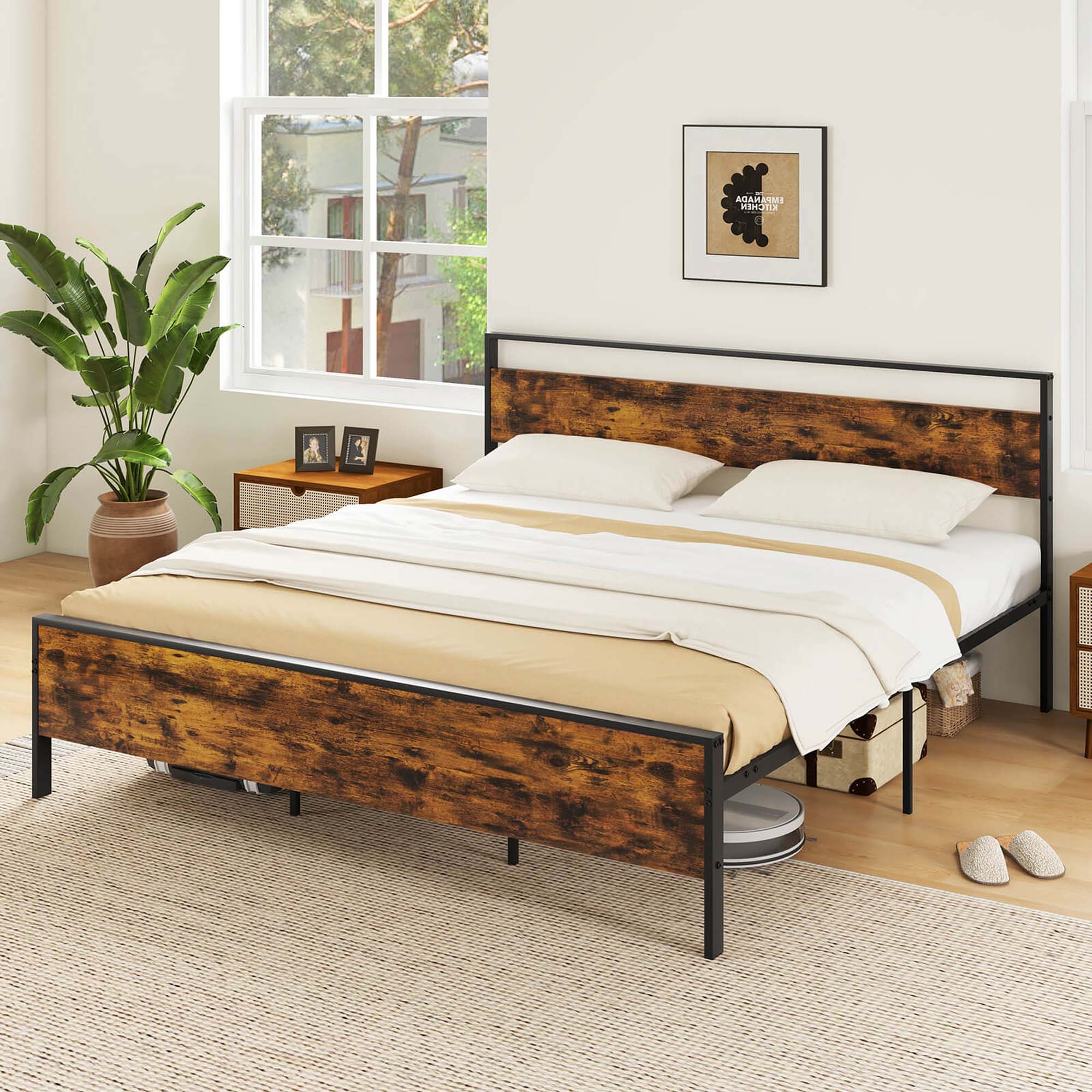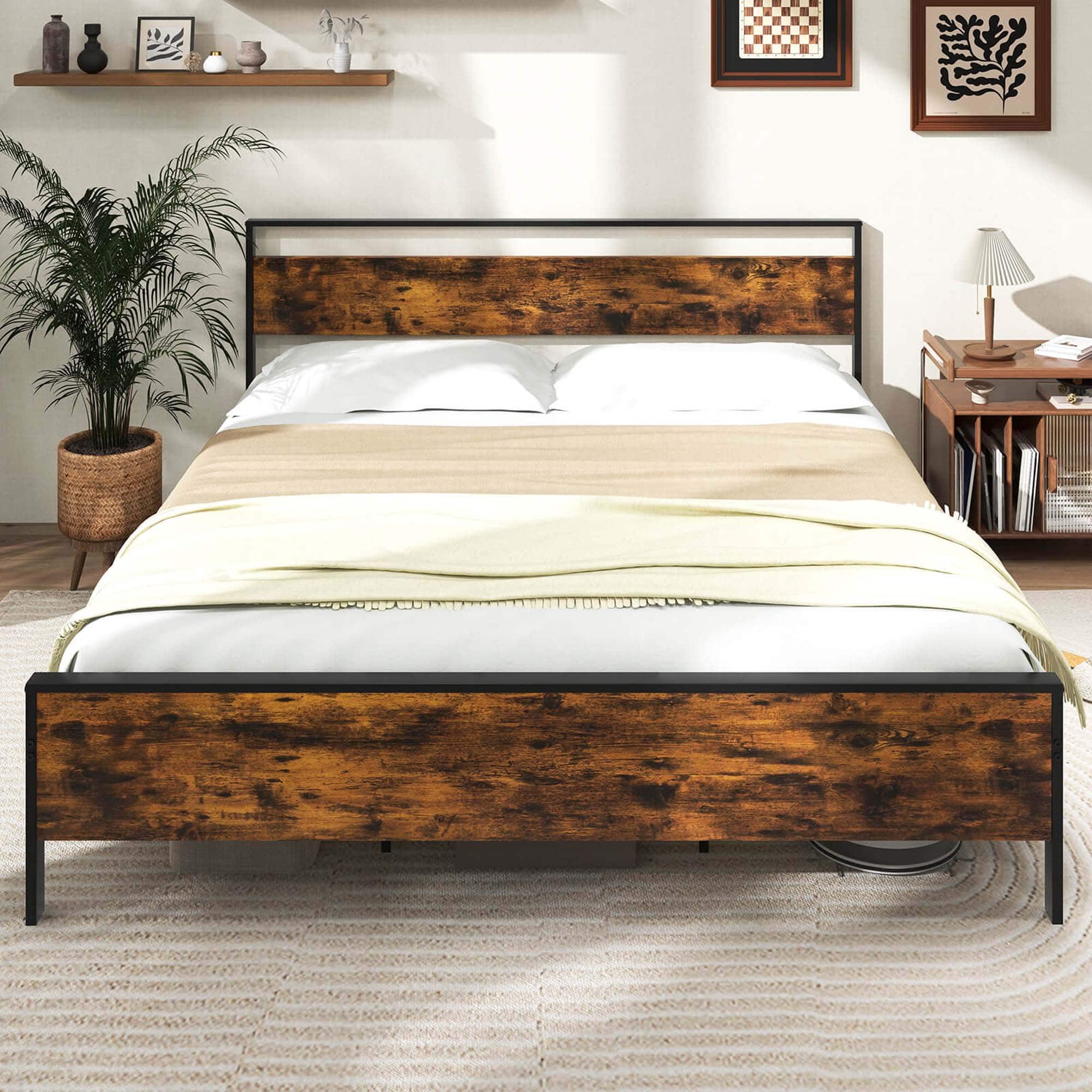- A:Answer This bed frame is constructed with a combination of metal and wood.