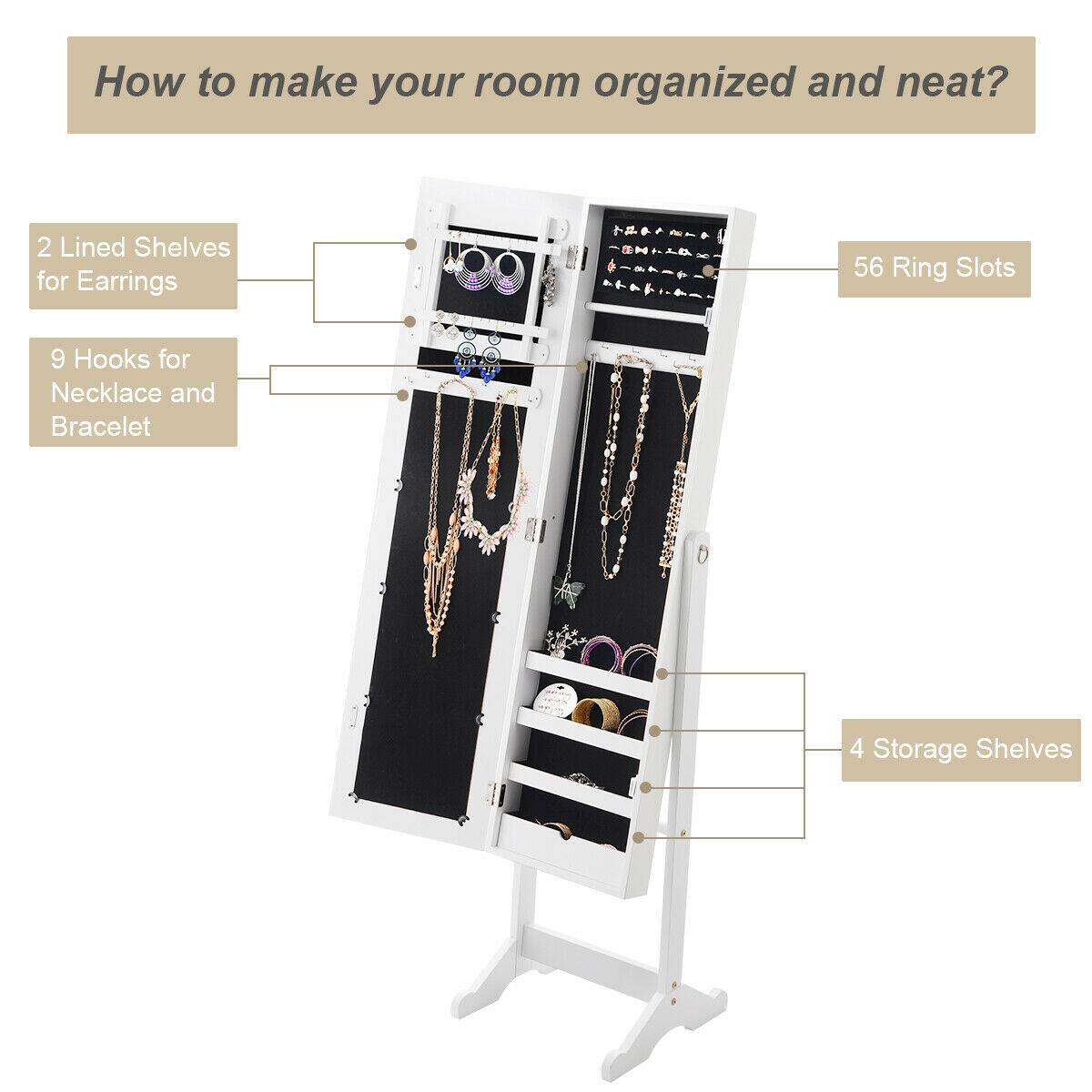 This question was asked about the related product: Costway - Mirrored Jewelry Cabinet Mirror Organizer Storage Box Stand - Black