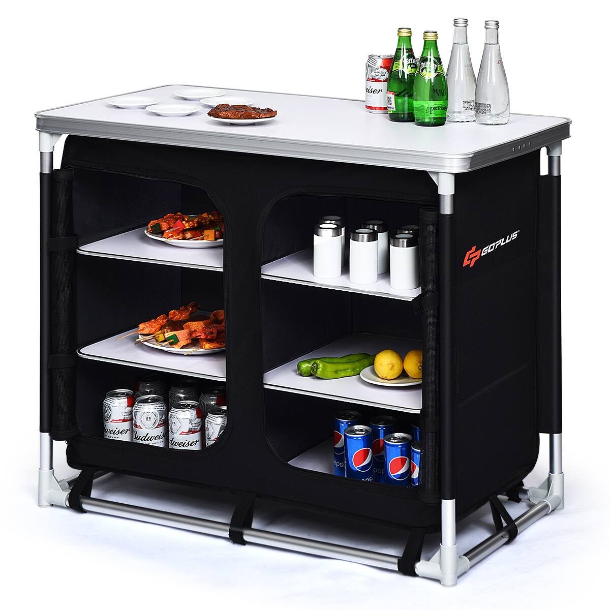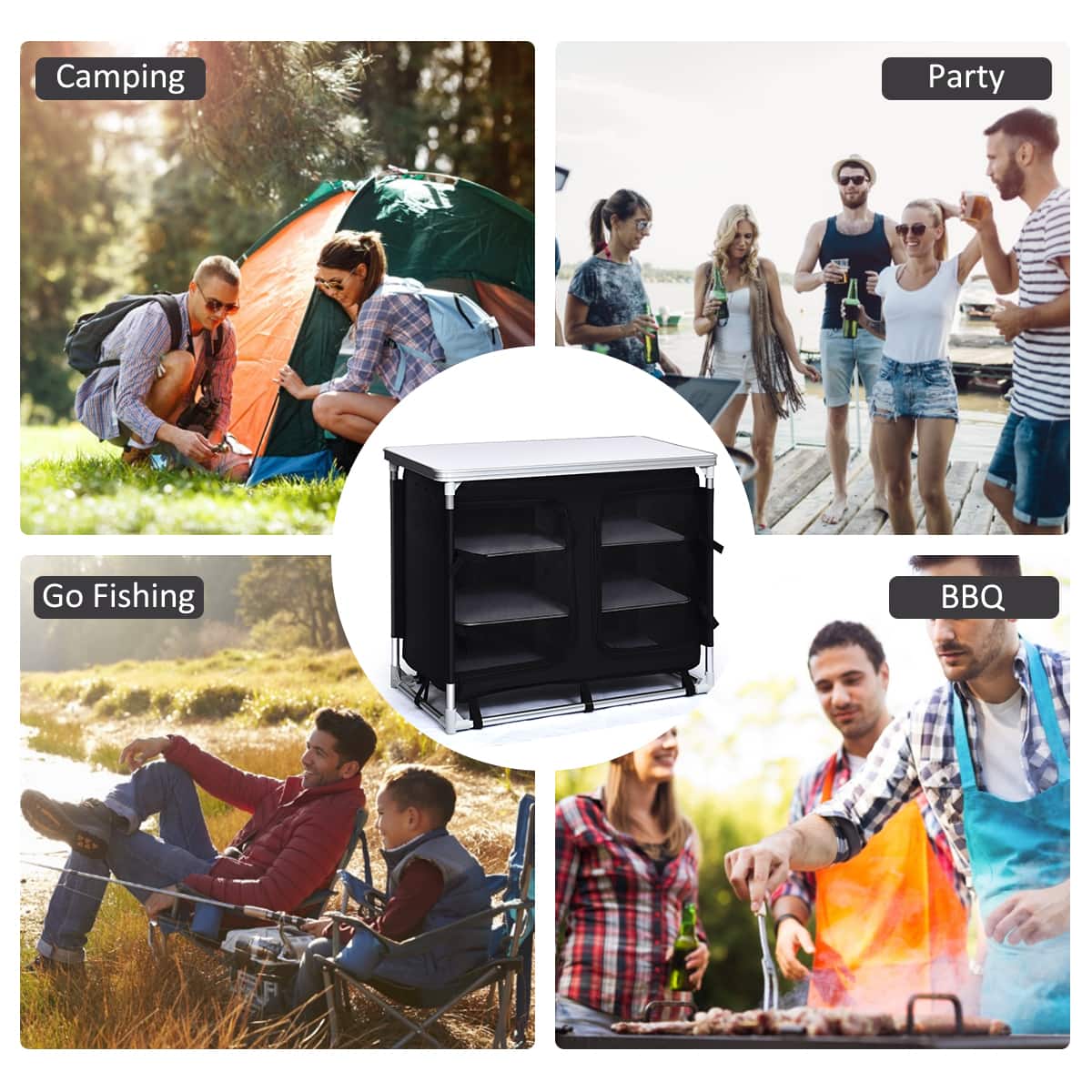 - A:Answer The product weight of the Costway Portable BBQ Aluminum Camping Table Kitchen Cook Station is 21 pounds.