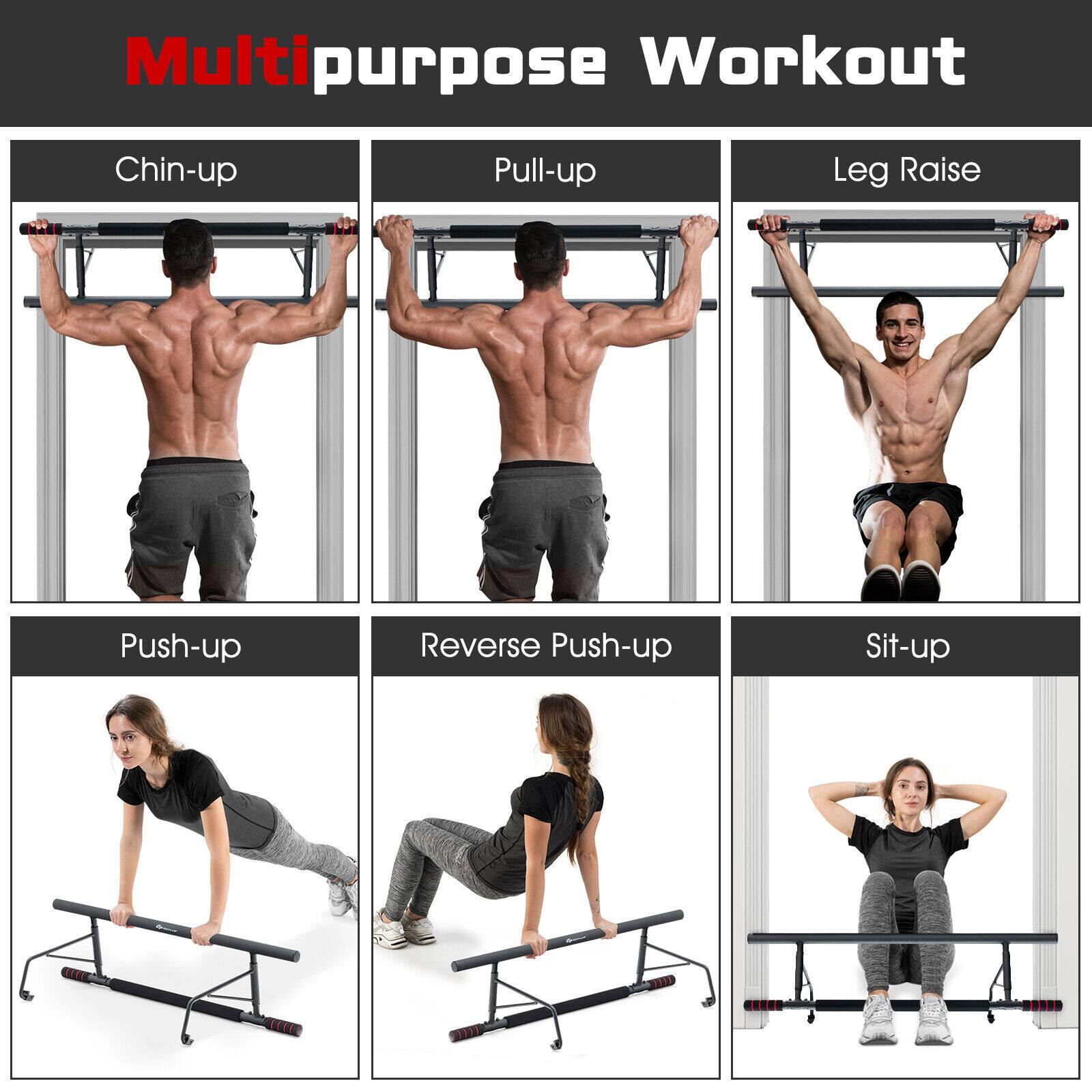- A:Answer This pull-up bar is designed to hook directly onto door frames, eliminating the need for any screws or drilling.