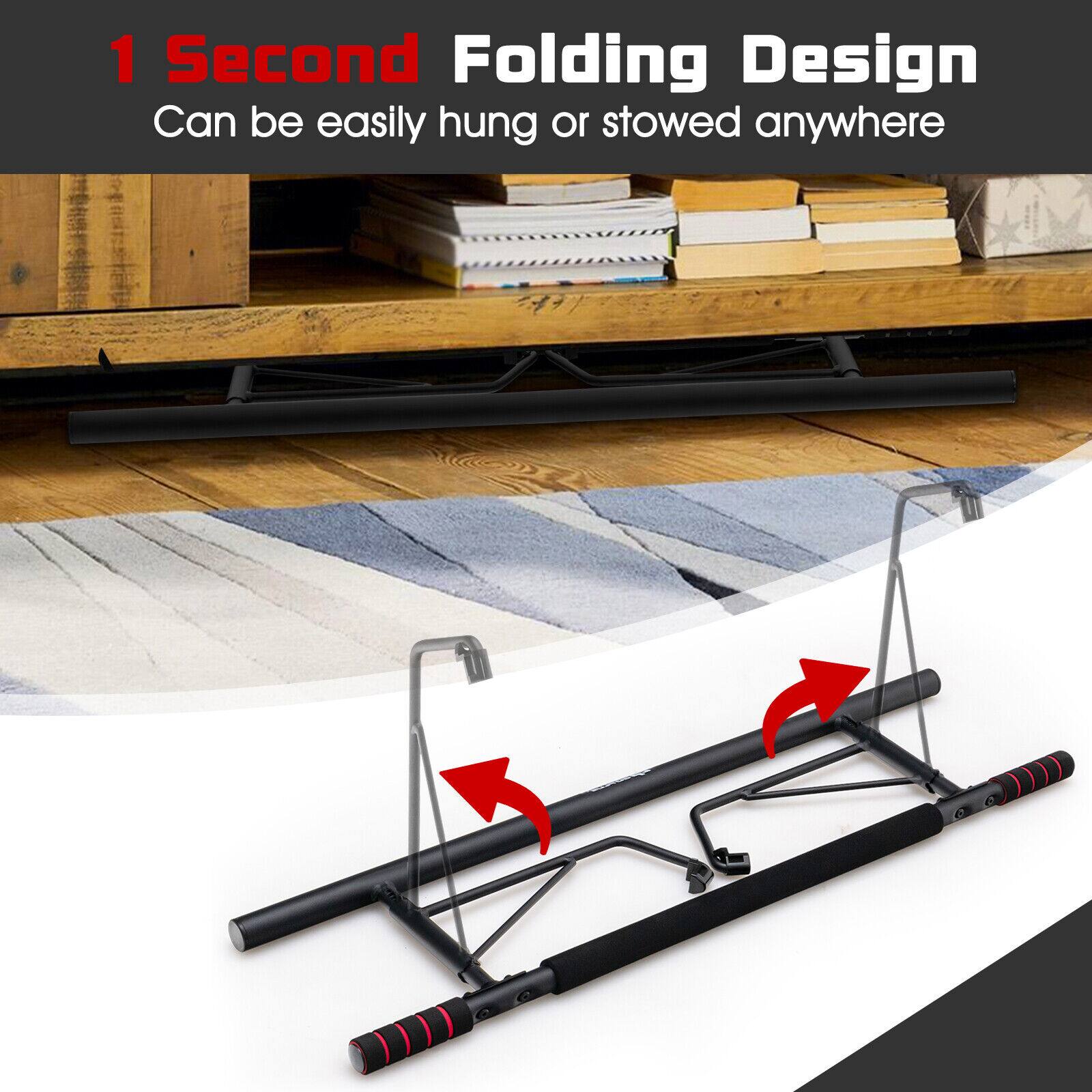 - A:Answer This pull-up bar is easy to fold and store. The product description specifically states it is foldable and doesn't require any tools or drilling for installation, indicating it's designed for easy setup and storage.