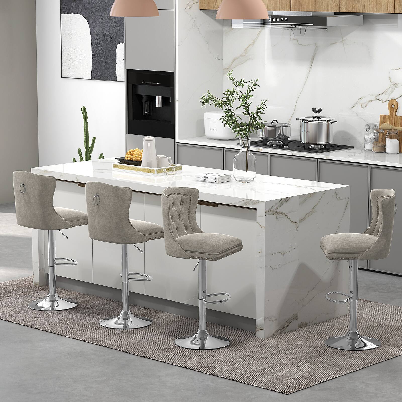 This question and answer was generated by AI based on customer and product data.QuestionWhat material is used for the upholstery of these bar chairs?