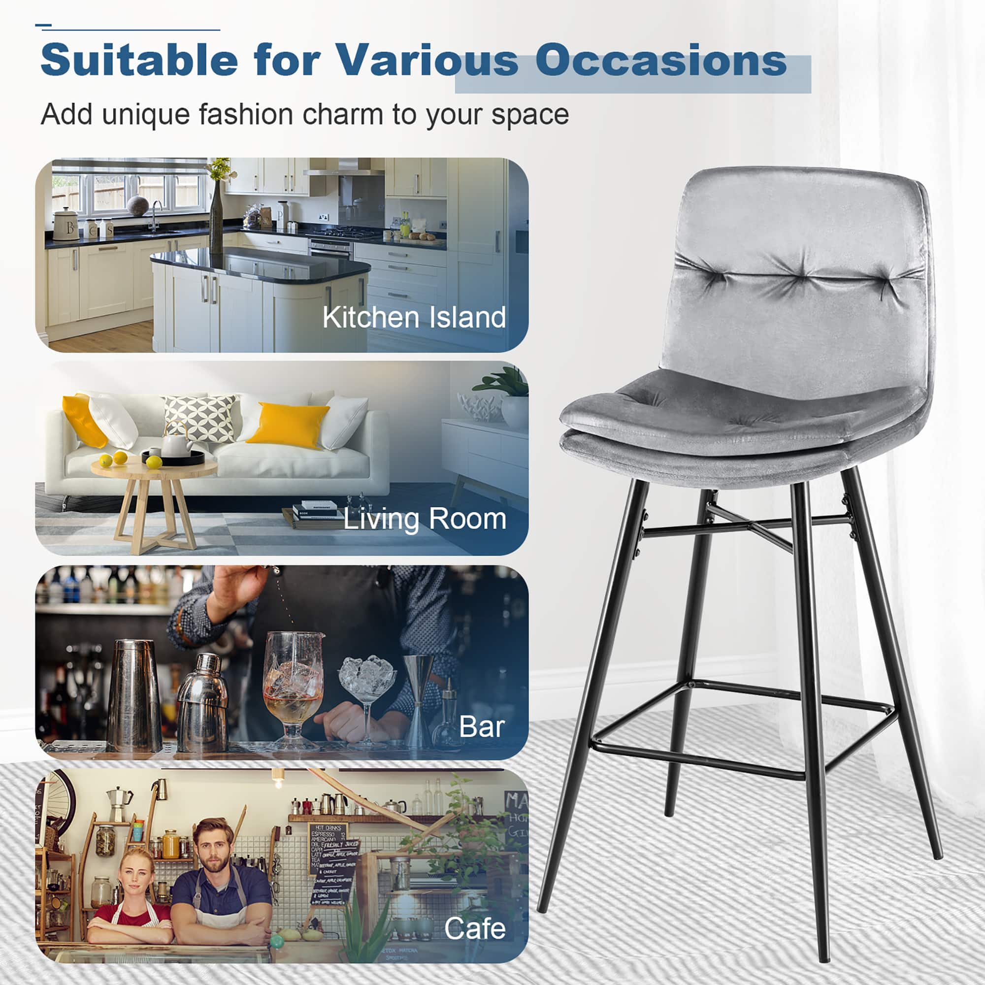 - A:Answer These bar stools are ideal for various locations, including the kitchen, dining room, home bar, coffee shop, etc.