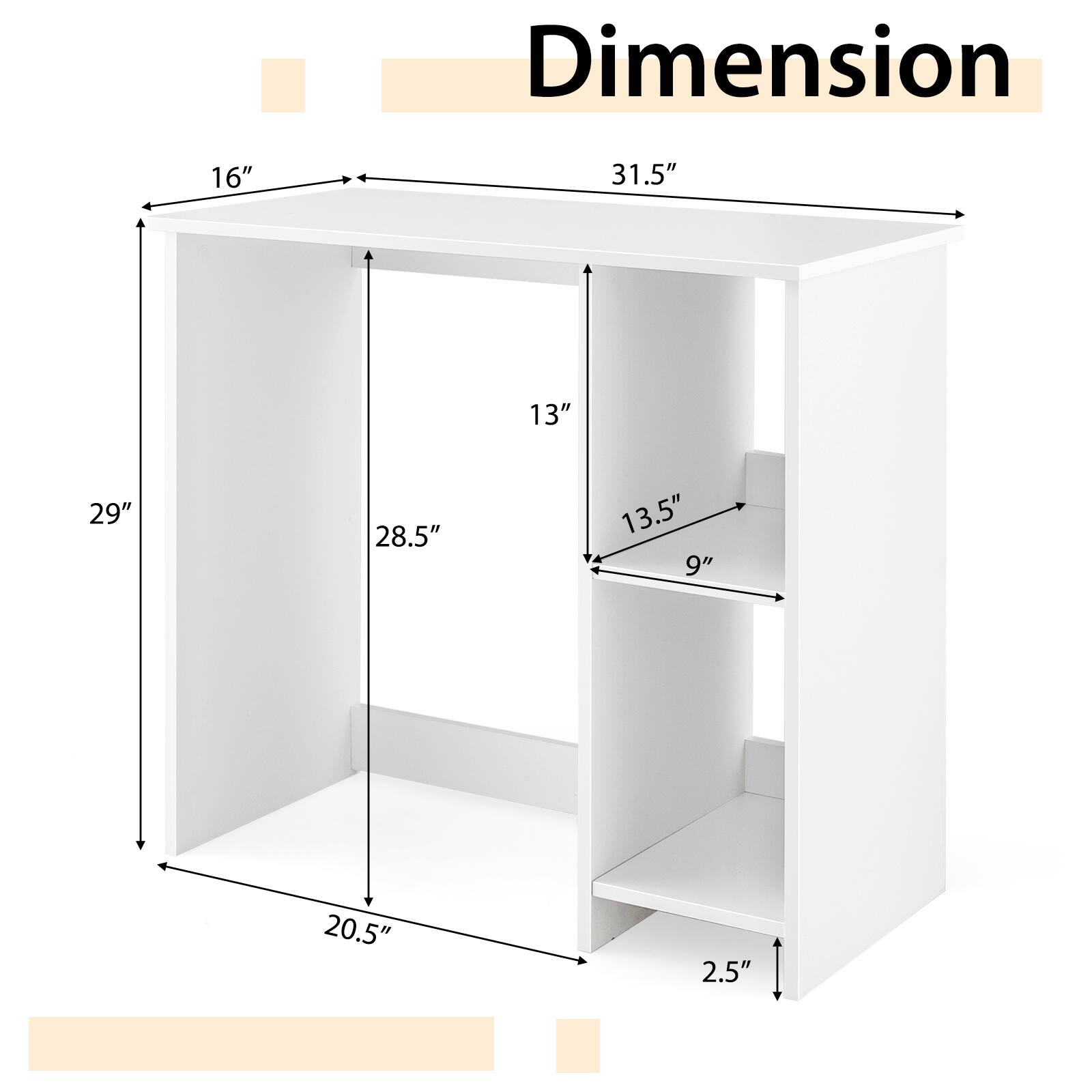 - A:Answer The desk's dimensions are 31.5 inches deep, 16 inches wide, and 29 inches high.