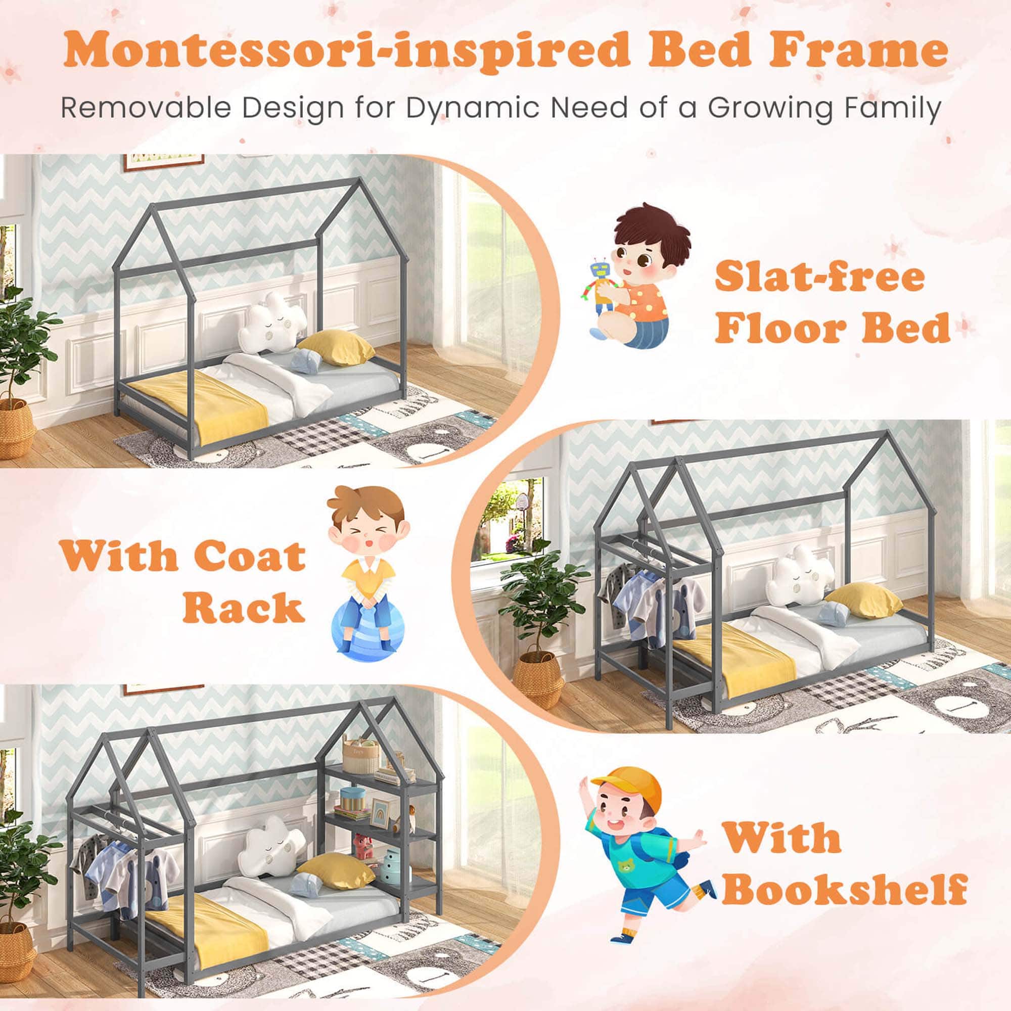 Costway - Full Size Montessori Floor Bed with LED Lights Safety Guardrails Compartments Shelf - Gray$209.99Your price for this item is $209.99$329.99The comparable value for this item is $329.99- $146.99Your price for this item is $146.99