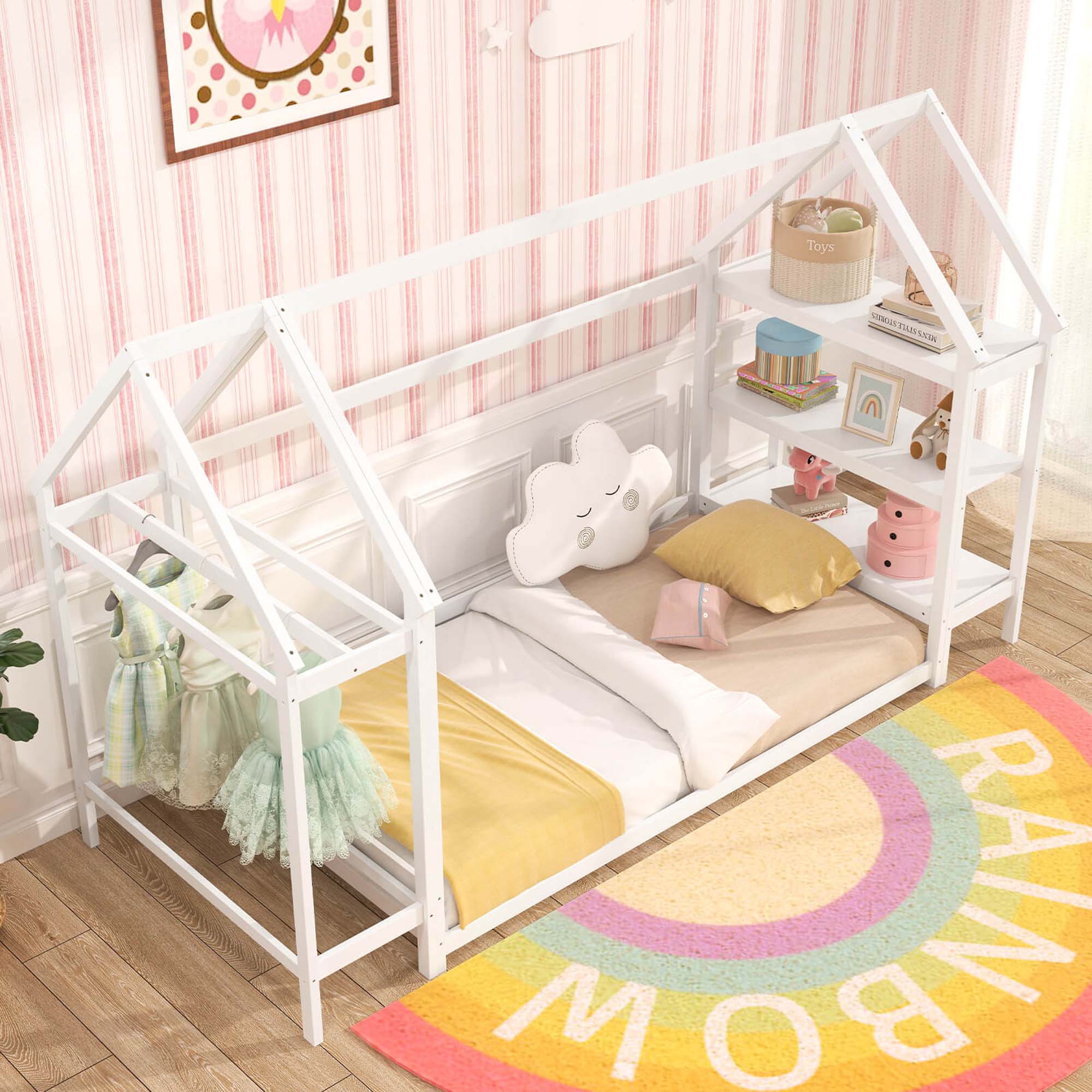 - A:Answer Yes, the bed has a built-in 3-tier bookshelf and a clothes hanging rack.