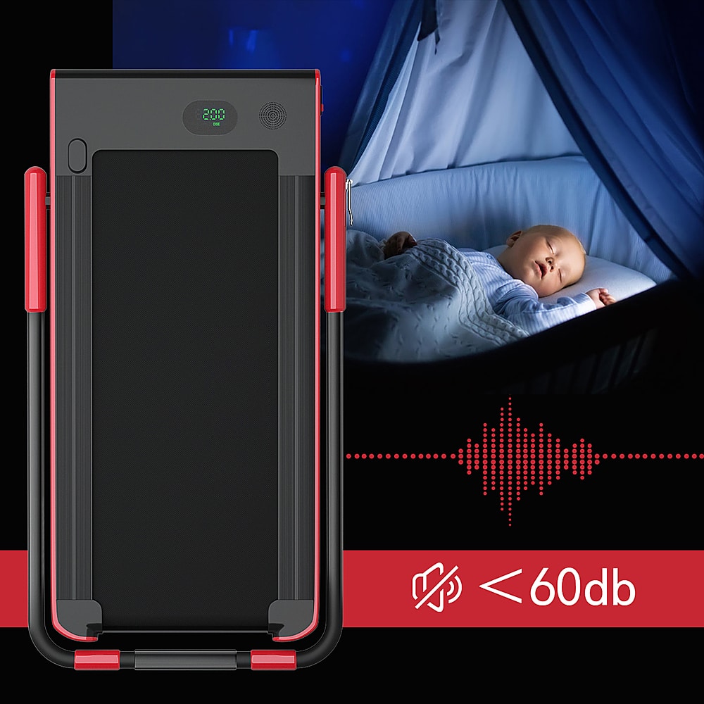This question was asked about the related product: Costway - Up To 7.5MPH 2.25HP 2 in 1 Folding Under Desk Treadmill W/ Speaker Remote Control APP, Single Display Screen - Red