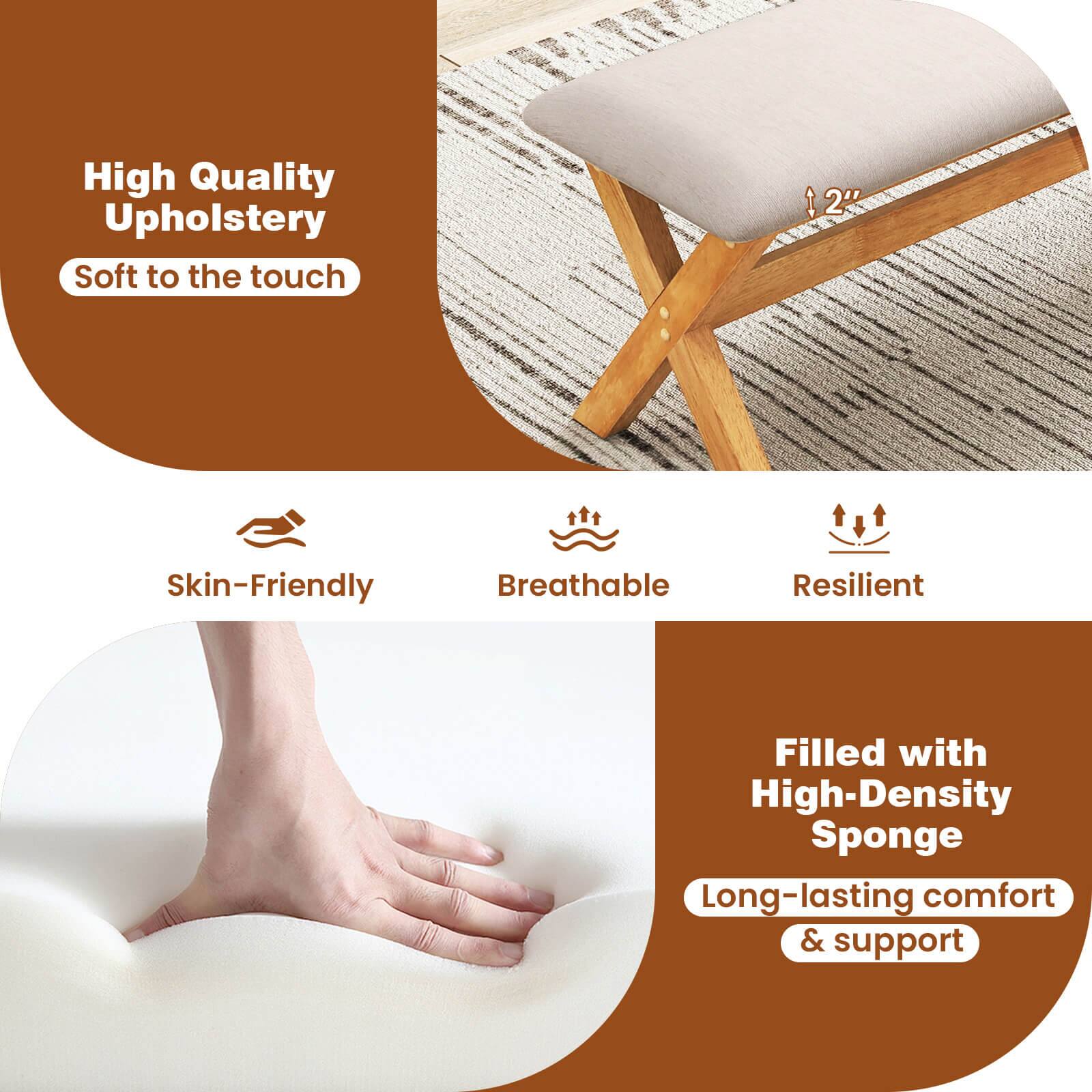 This question and answer was generated by AI based on customer and product data.Q: QuestionWhat type of upholstery fabric is used on the bench?