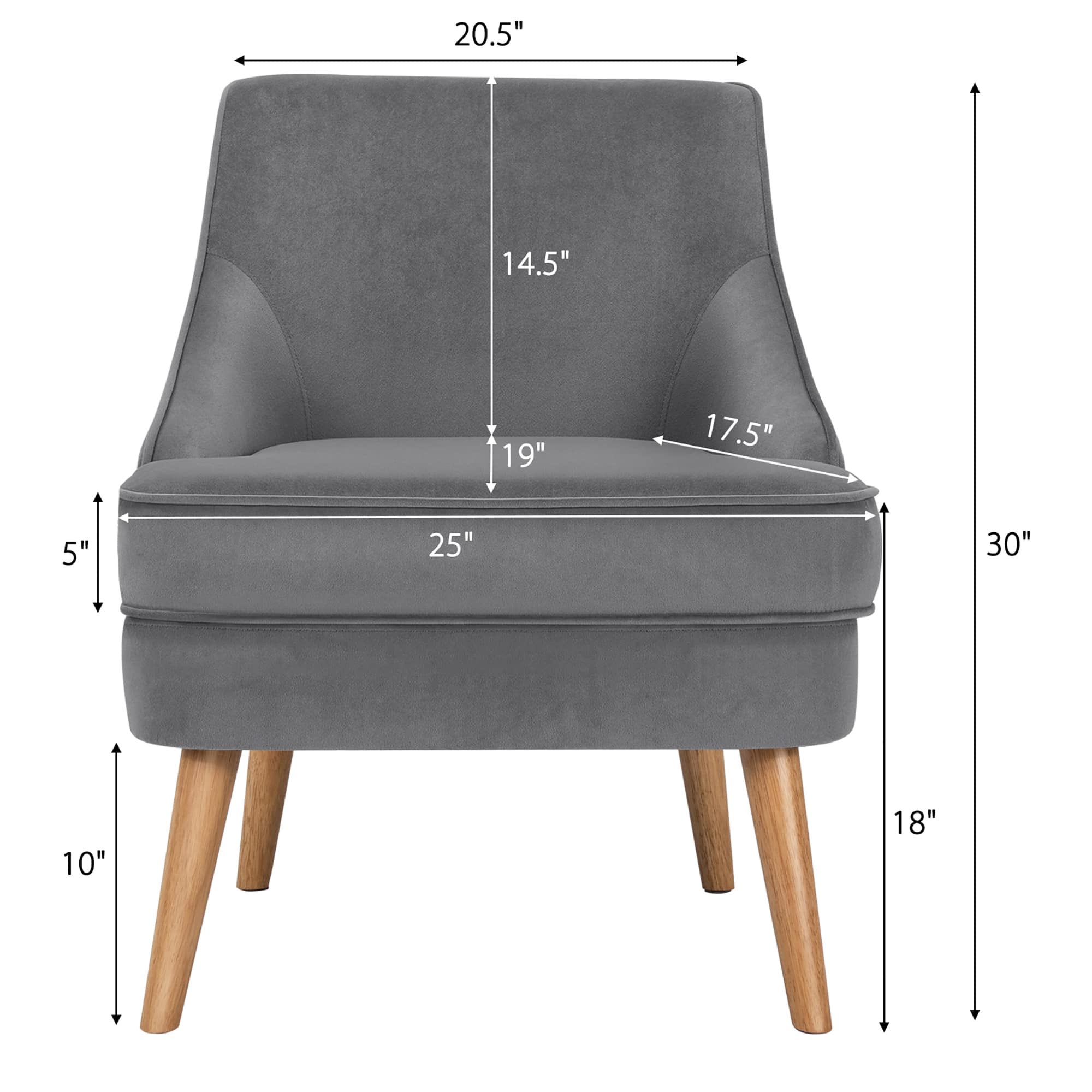 - A:Answer The chair is 27 inches deep, 25 inches wide, and 30 inches tall.