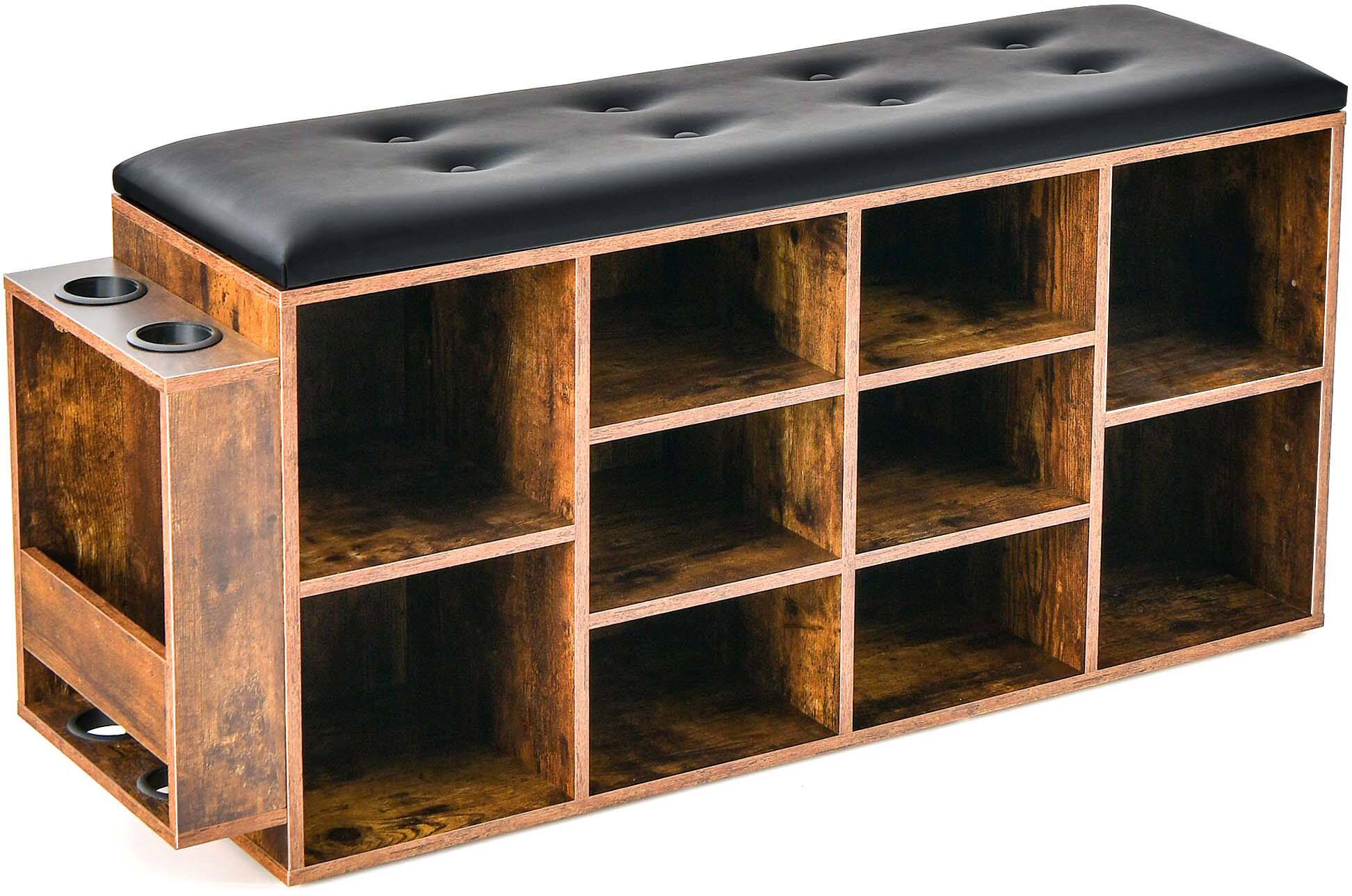 - A:Answer This shoe bench has 10 compartments for storage.