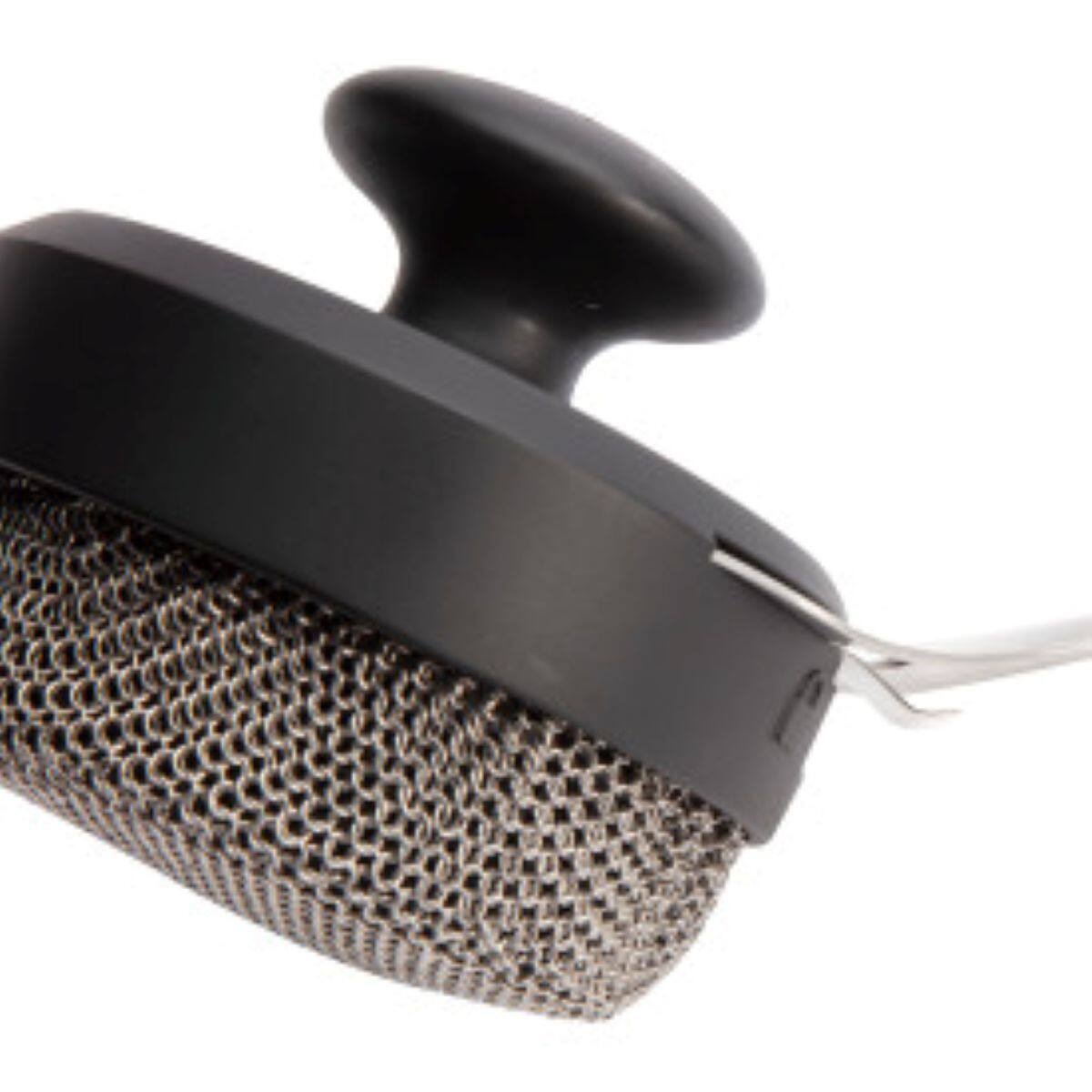 - A:Answer The sturdy, tight-knit chainmail mesh effectively tackles grime without breaking down.