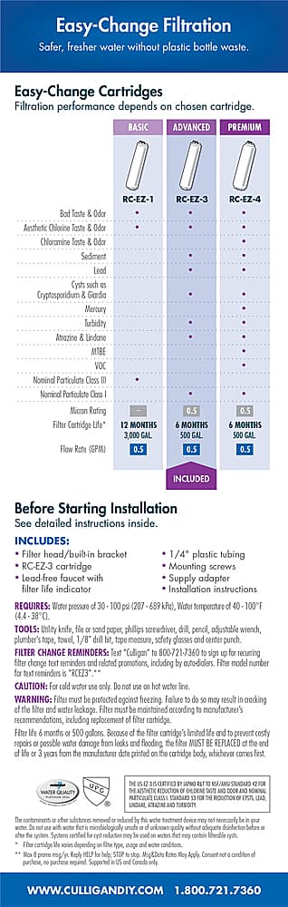- A:Answer Yes, the Culligan system includes one RC-EZ-3 Advanced Filtration replacement cartridge.