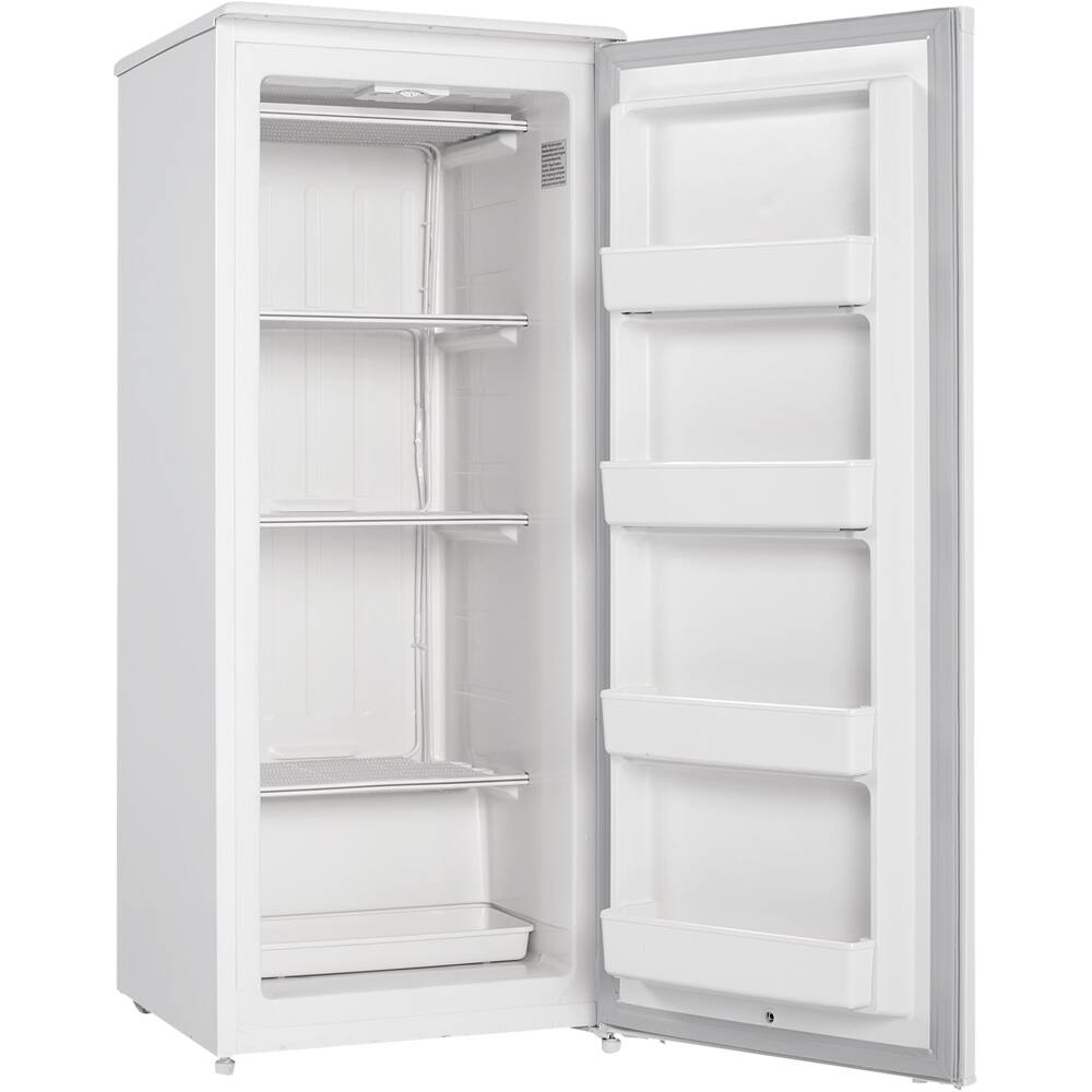 Thank you for your question. The upright freezer is approximately 24 inches wide by 59 inches high by 24 13/16 inches deep. It requires 5 inches on both sides including the back and top for a total of 29 inches in width, 64 inches in height and 29 13/16 inches in depth.