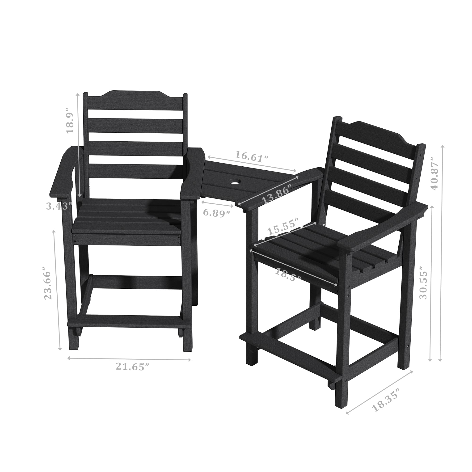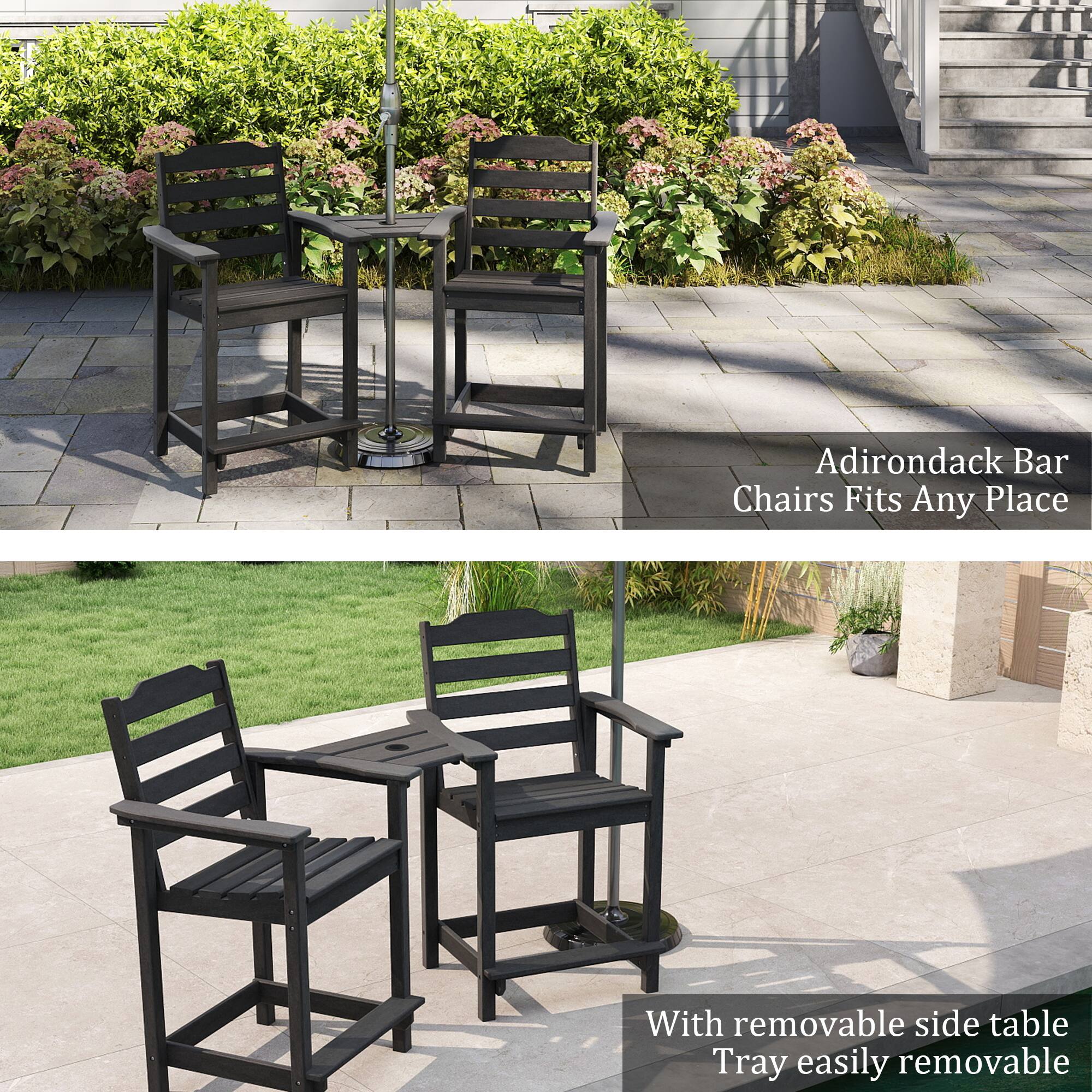 Decksplore - 2-Pack HDPE Tall Chairs with Connecting Tray & Patio Footrest All-Weather Outdoor Use - Black