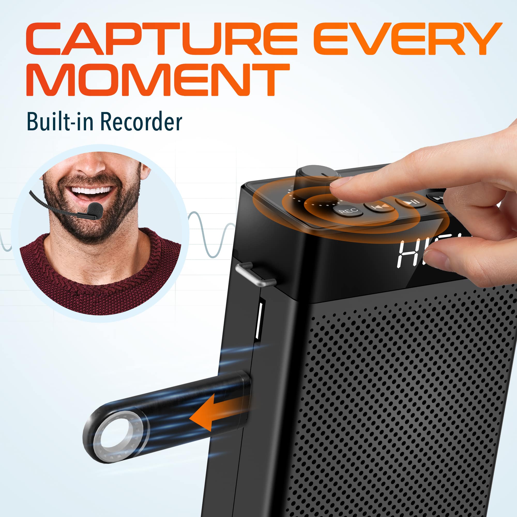 Q: Questiondoes the voice amplifier clip on to your waist belt?