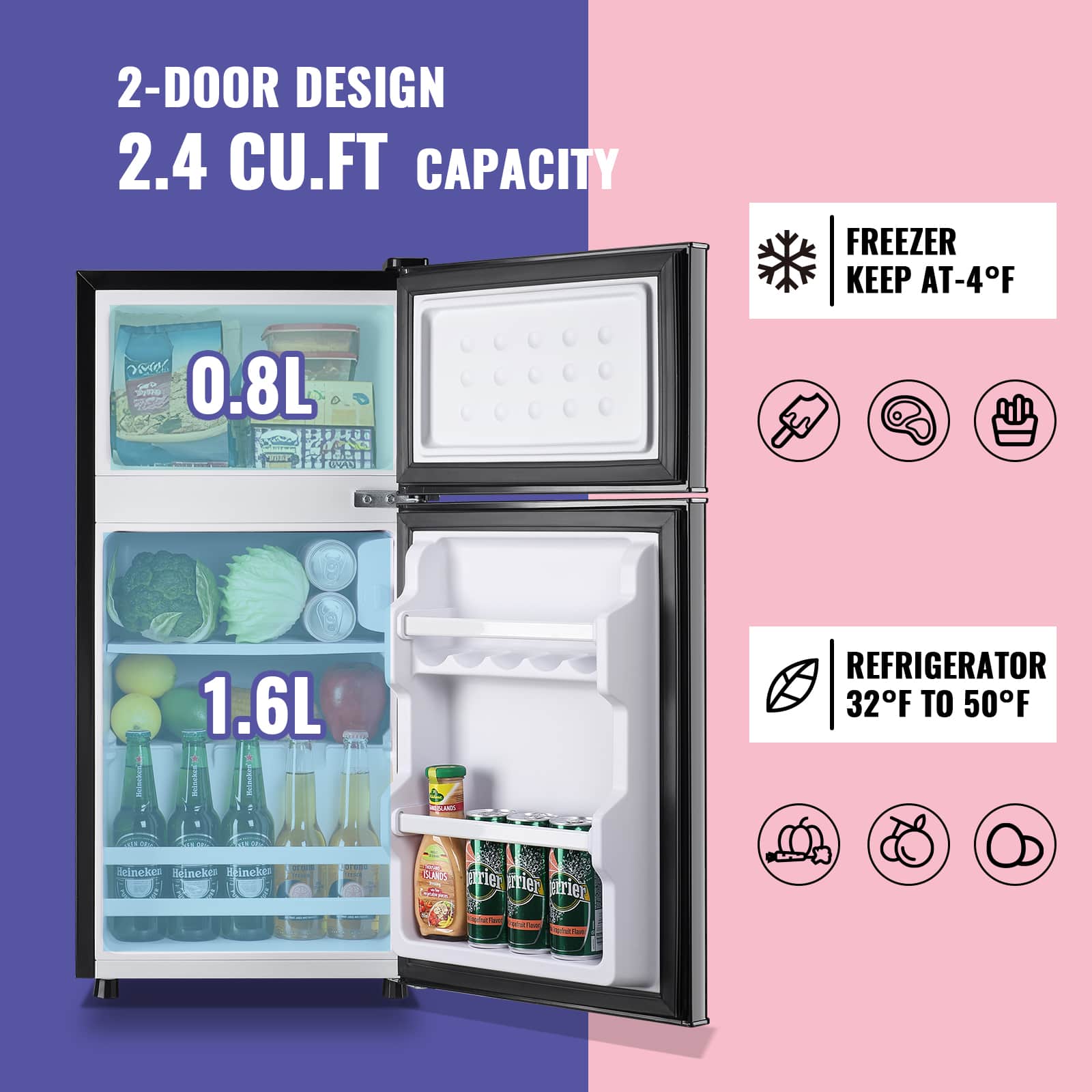 This question was asked about the related product: DEMULLER - 2.4 Cu.Ft Compact Mini Fridge with Freezer, Dorm Kitchen Refrigerator with 7 Temperature Settings - Silver