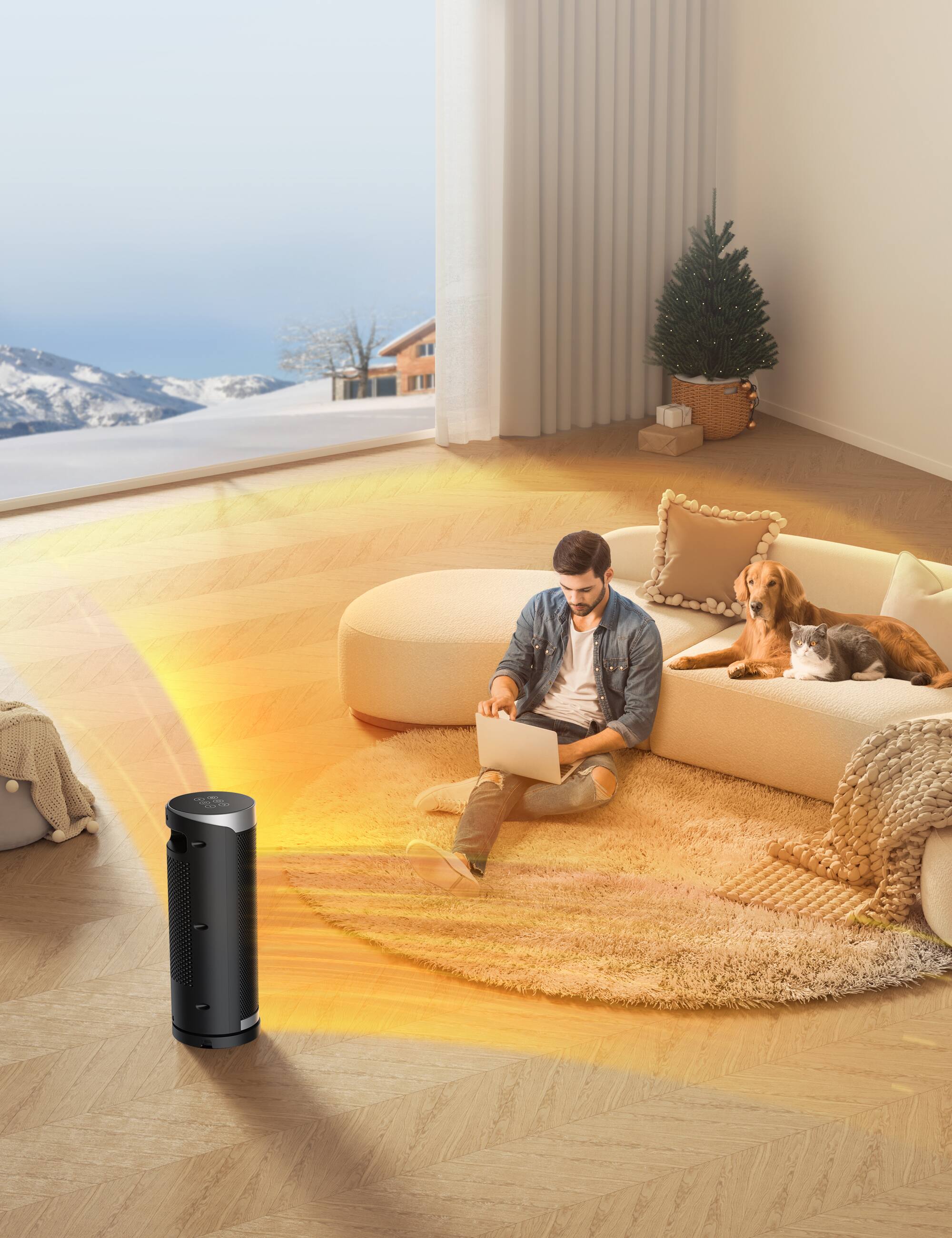 This question and answer was generated by AI based on customer and product data.QuestionHow does the uniform heating feature help distribute warm air more evenly towards the room's corners?