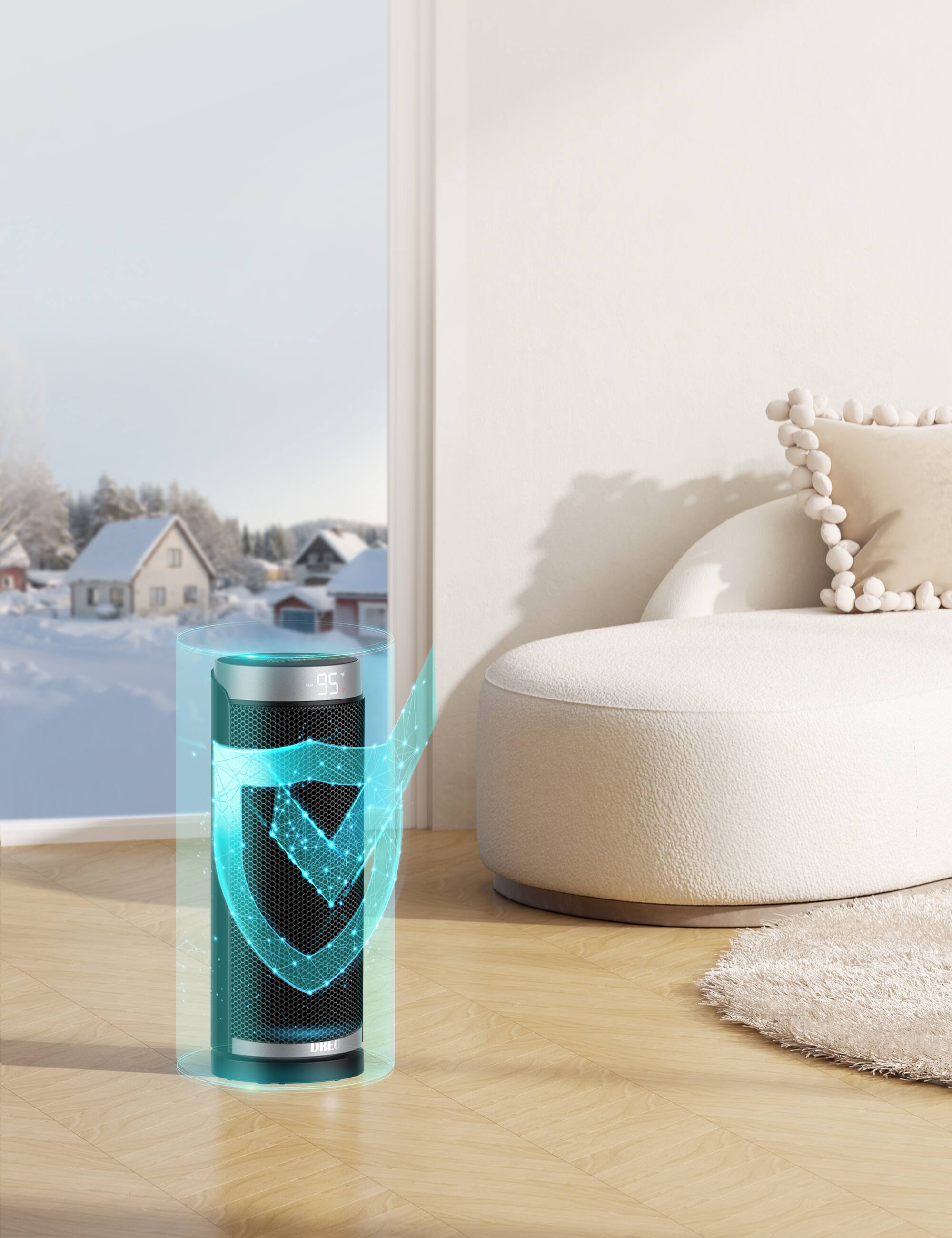 This question and answer was generated by AI based on customer and product data.QuestionCan you provide more details about the energy efficiency of the heater, particularly the built-in precise temperature sensor and ECO mode?