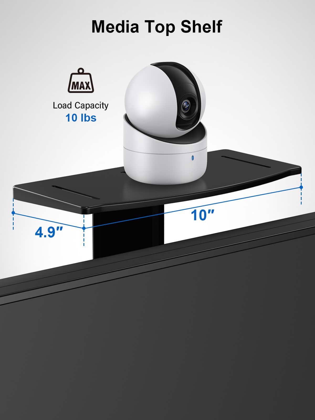 - A:Answer Yes, it includes a height-adjustable media top shelf that can support a video camera, game motion sensor, or similar items.