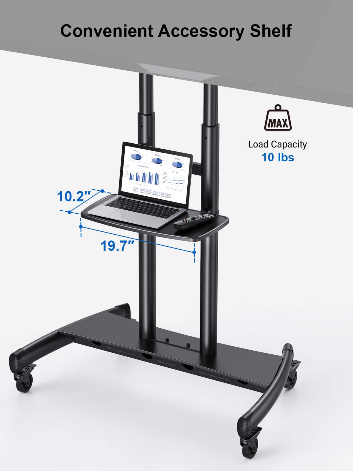 - A:Answer The TV cart can support up to 200 lbs.