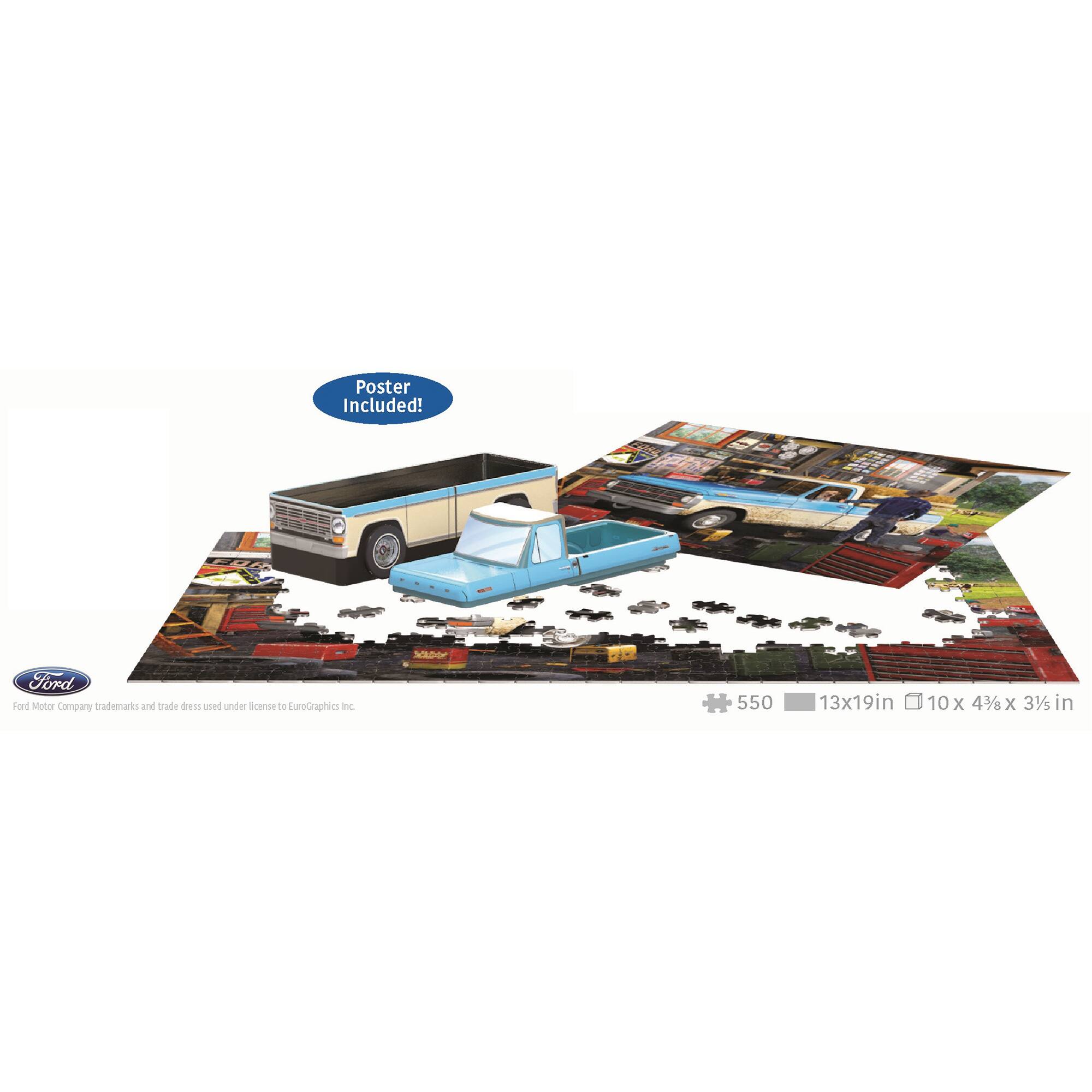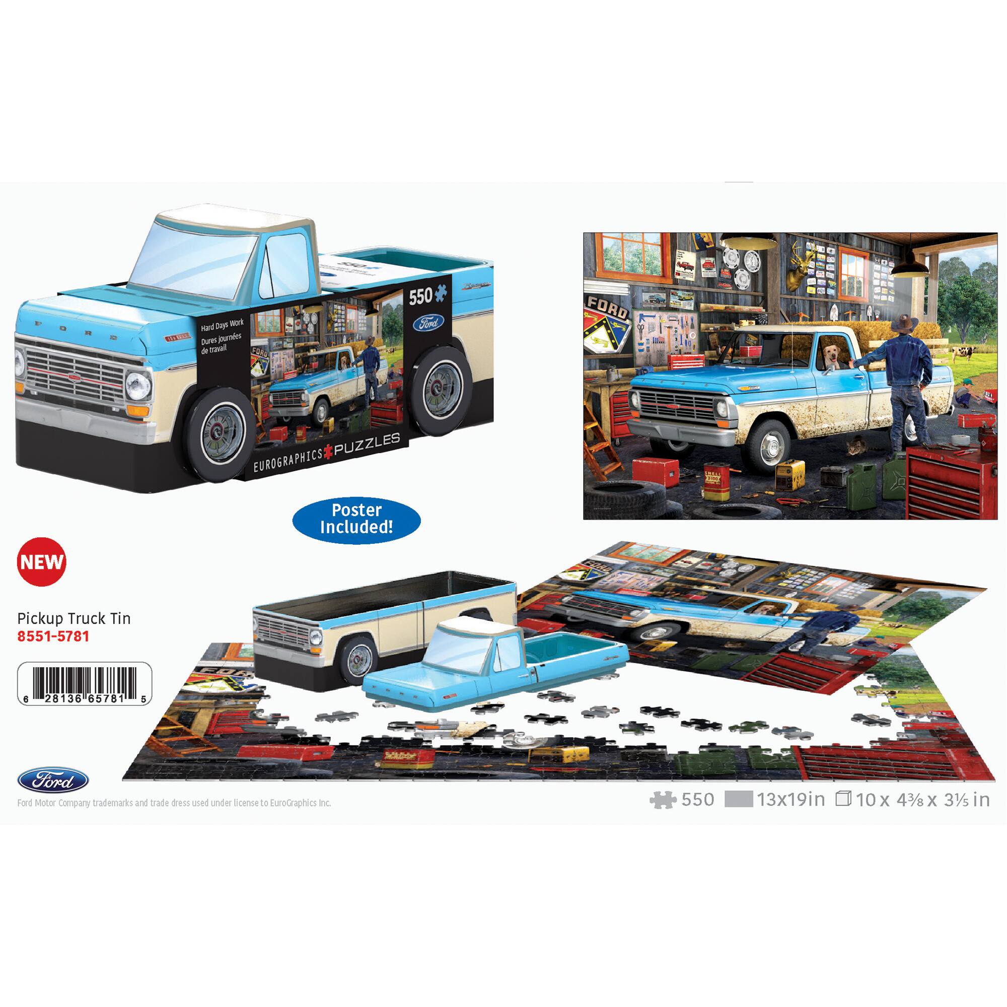 - A:Answer This Eurographics Ford Pick-Up Truck Shaped Tin Jigsaw Puzzle contains 550 pieces.