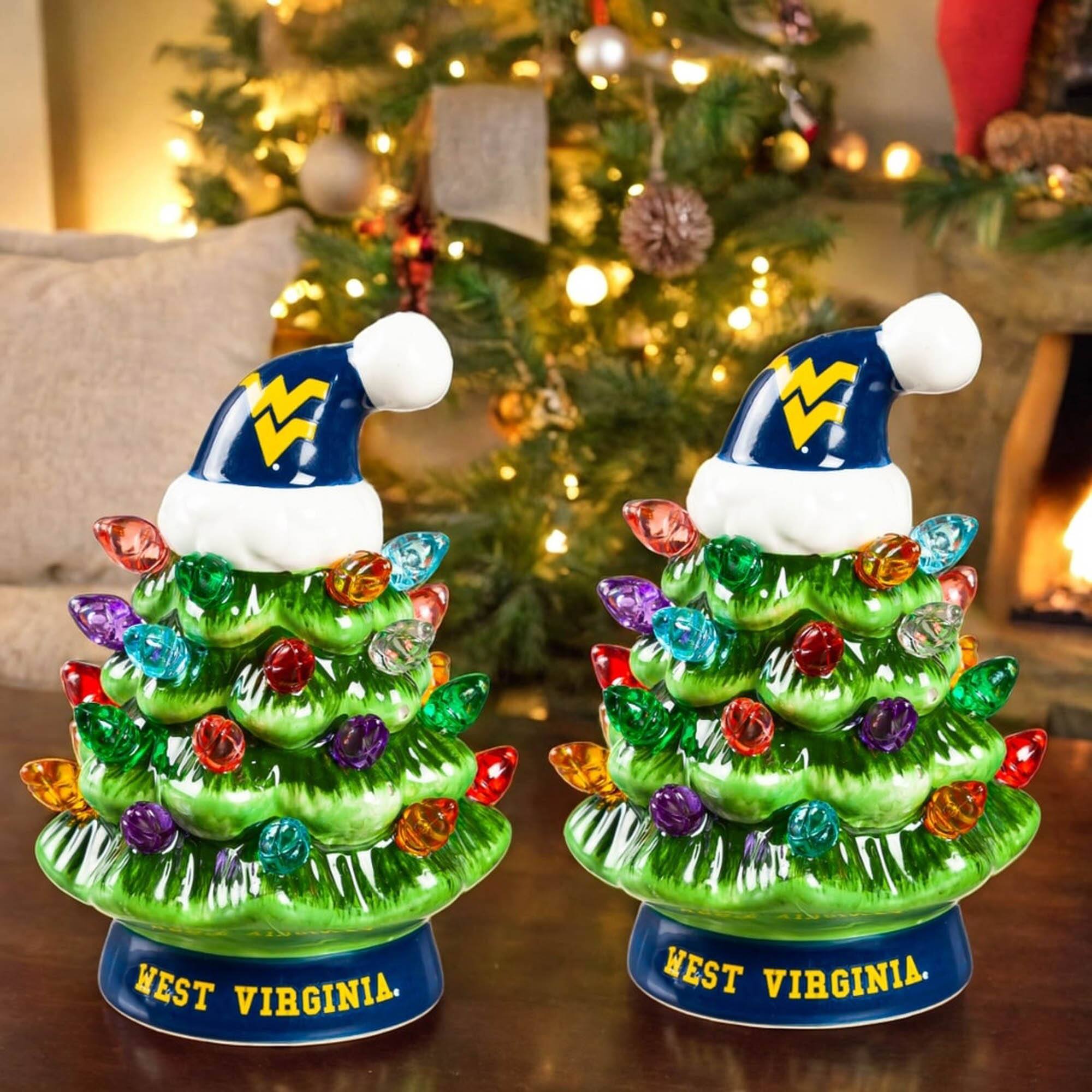 Evergreen Enterprises - West Virginia Mountaineers 2-Pack 4" Ceramic LED Christmas Tree Set - Multicolor
