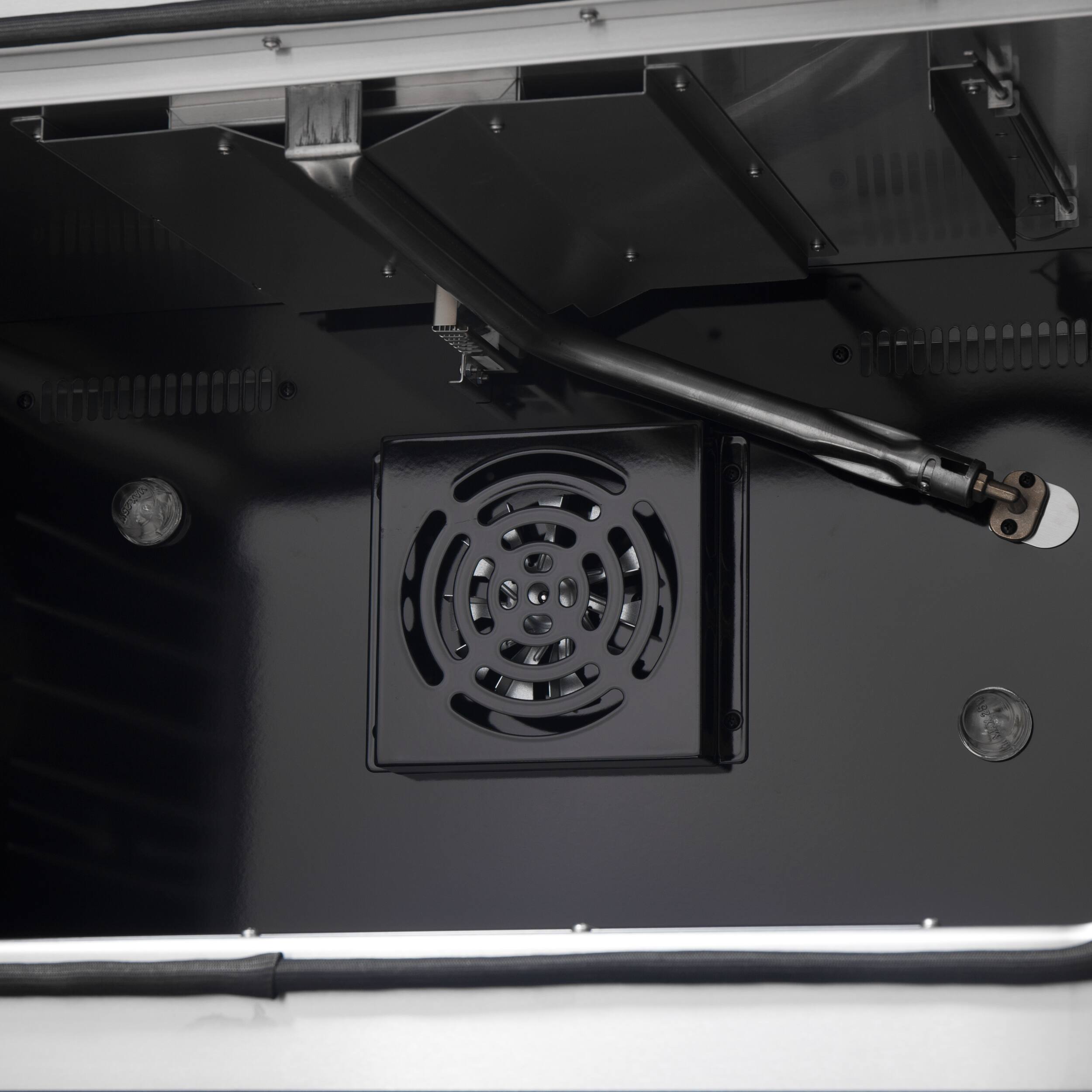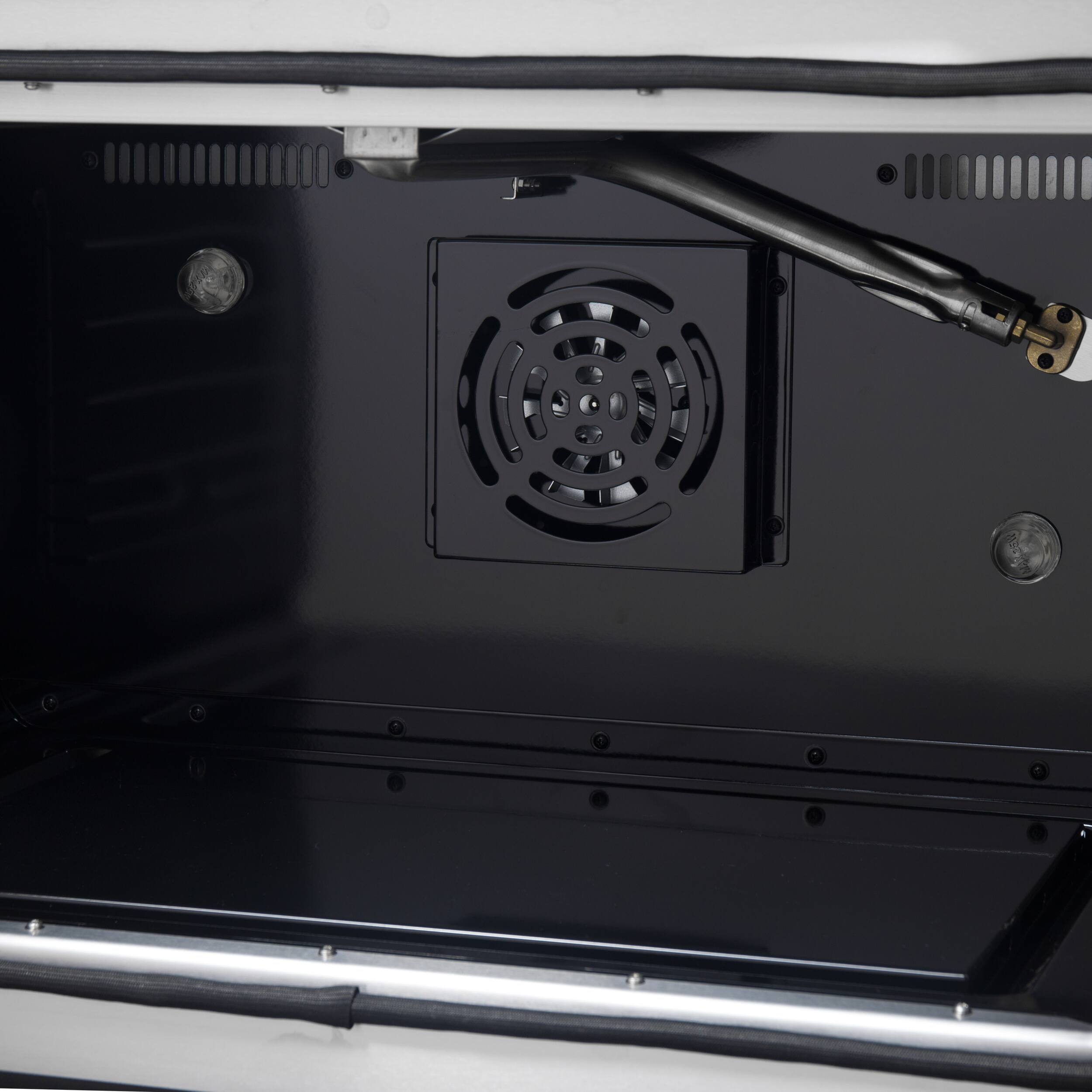 - A:Answer The black enamel oven interior enhances heat distribution and makes cleaning easy.