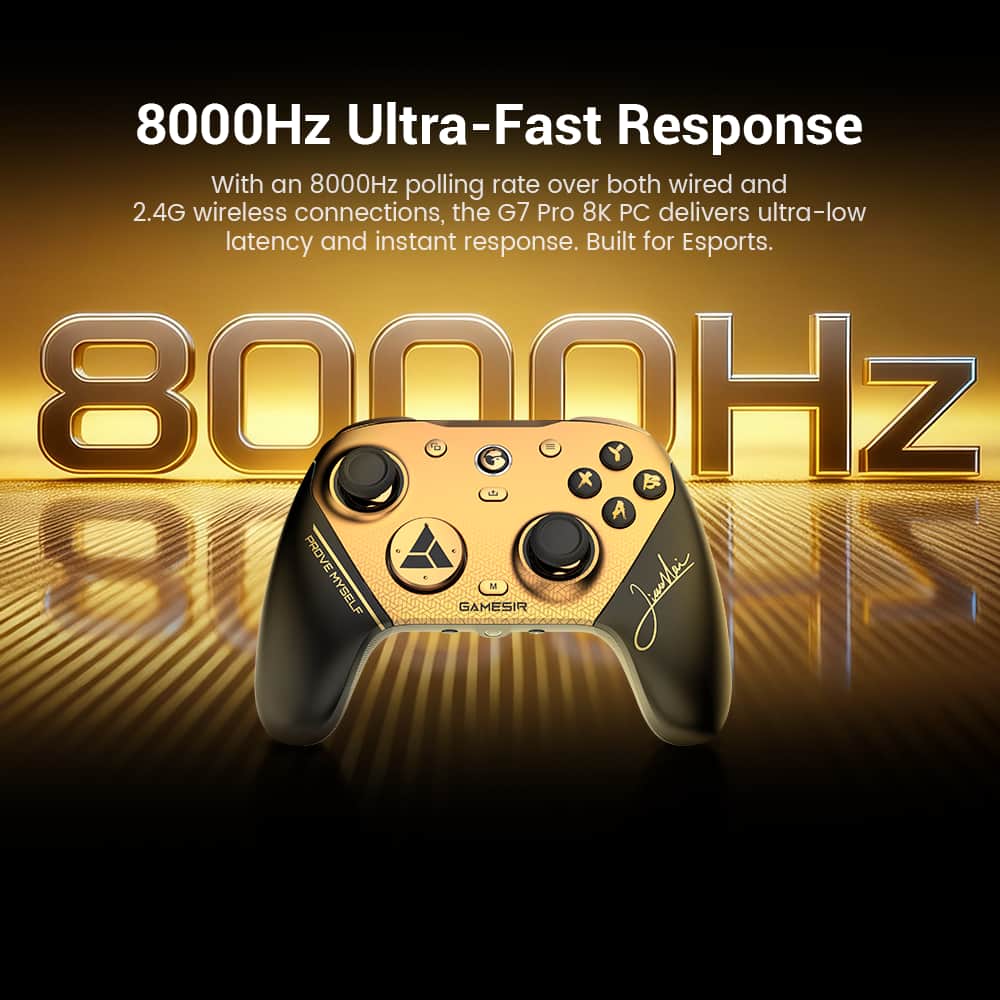 GameSir - G7 Pro 8k Controller for PC, Mag-Res TMR Sticks, Hall Effect Triggers, 8000Hz Polling Rate, Tri-Mode Connectivity - Black/Gold