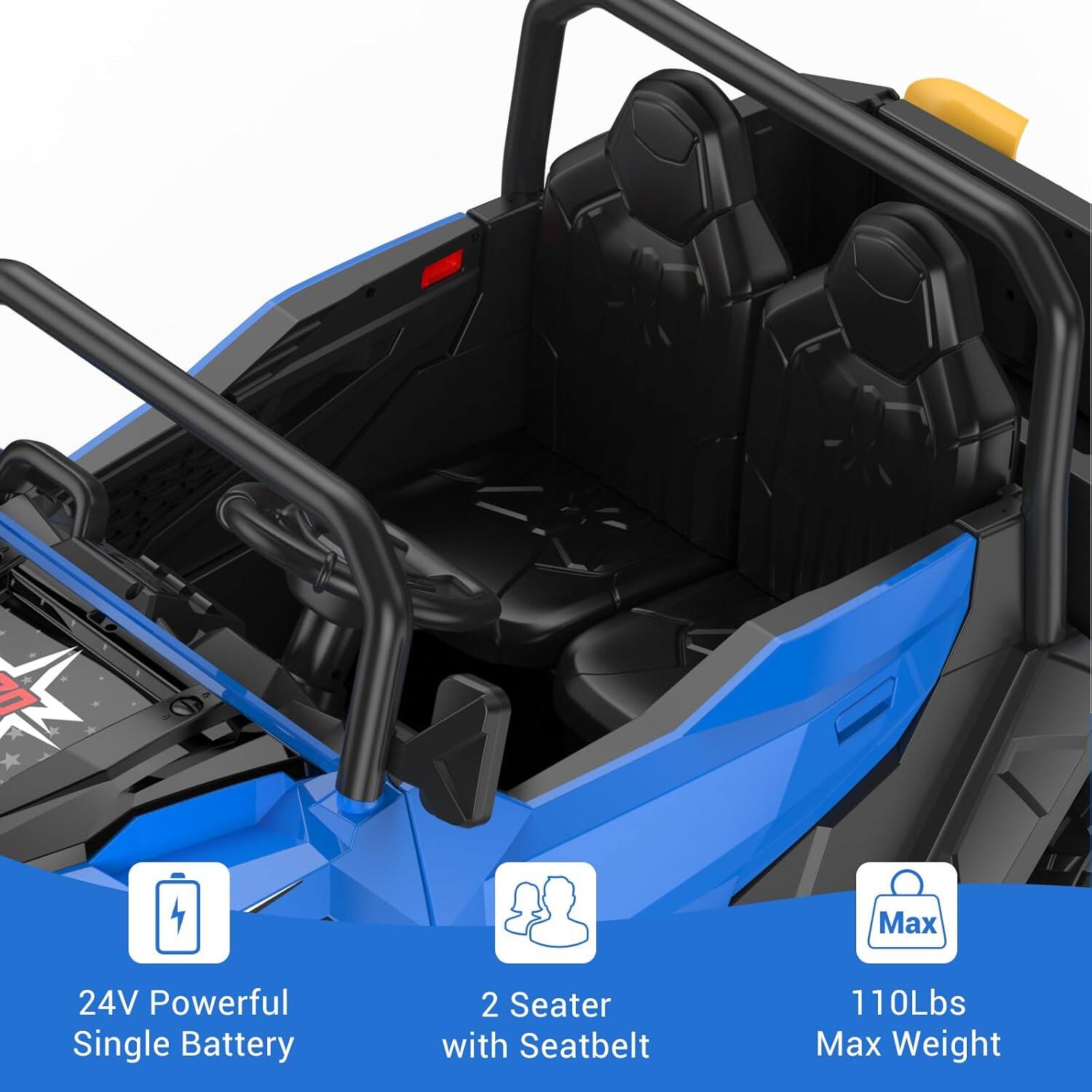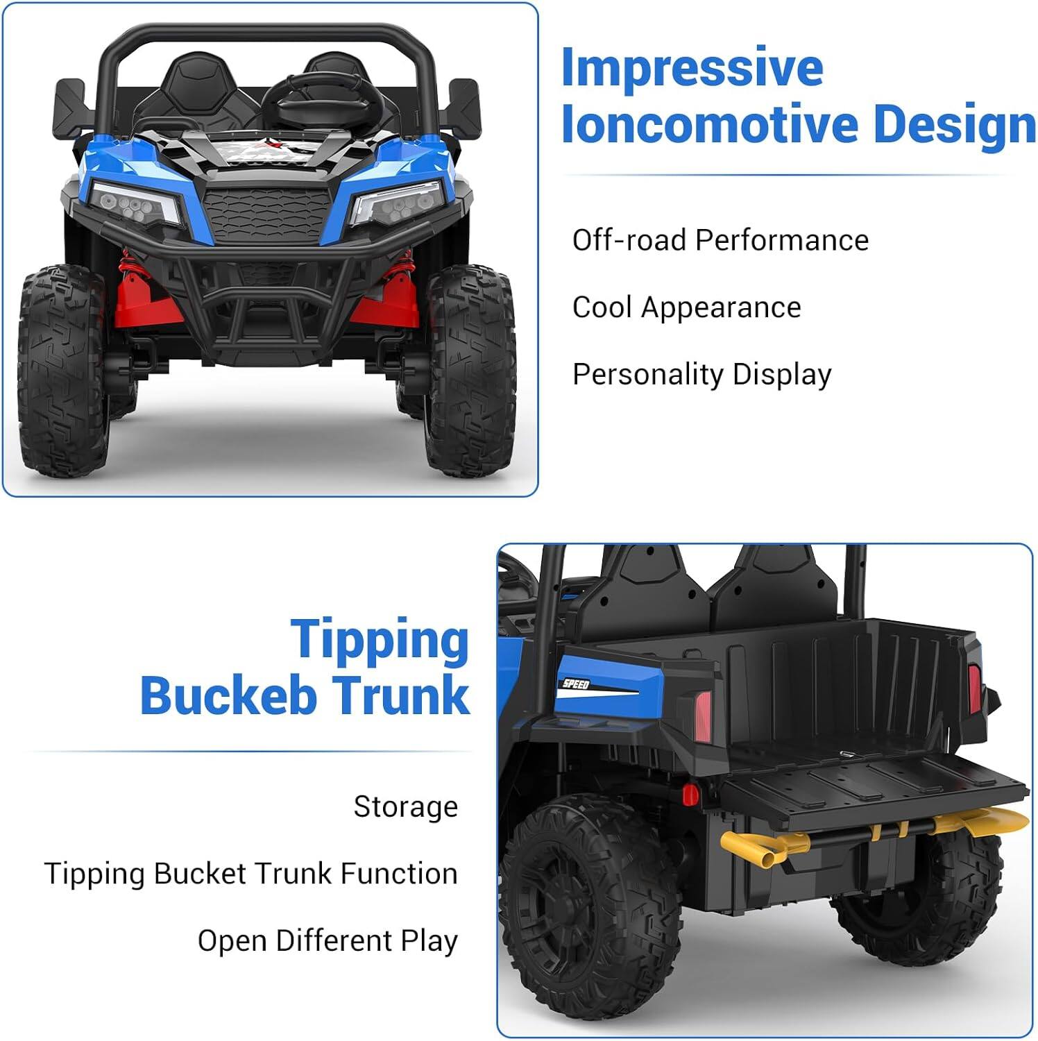 GARVEE - 24V 4WD 2-Seater Ride-On Dump Truck for Kids, 4×200W Motors, Remote Control, LED Lights, Music, Electric Bed & Shovel - Blue