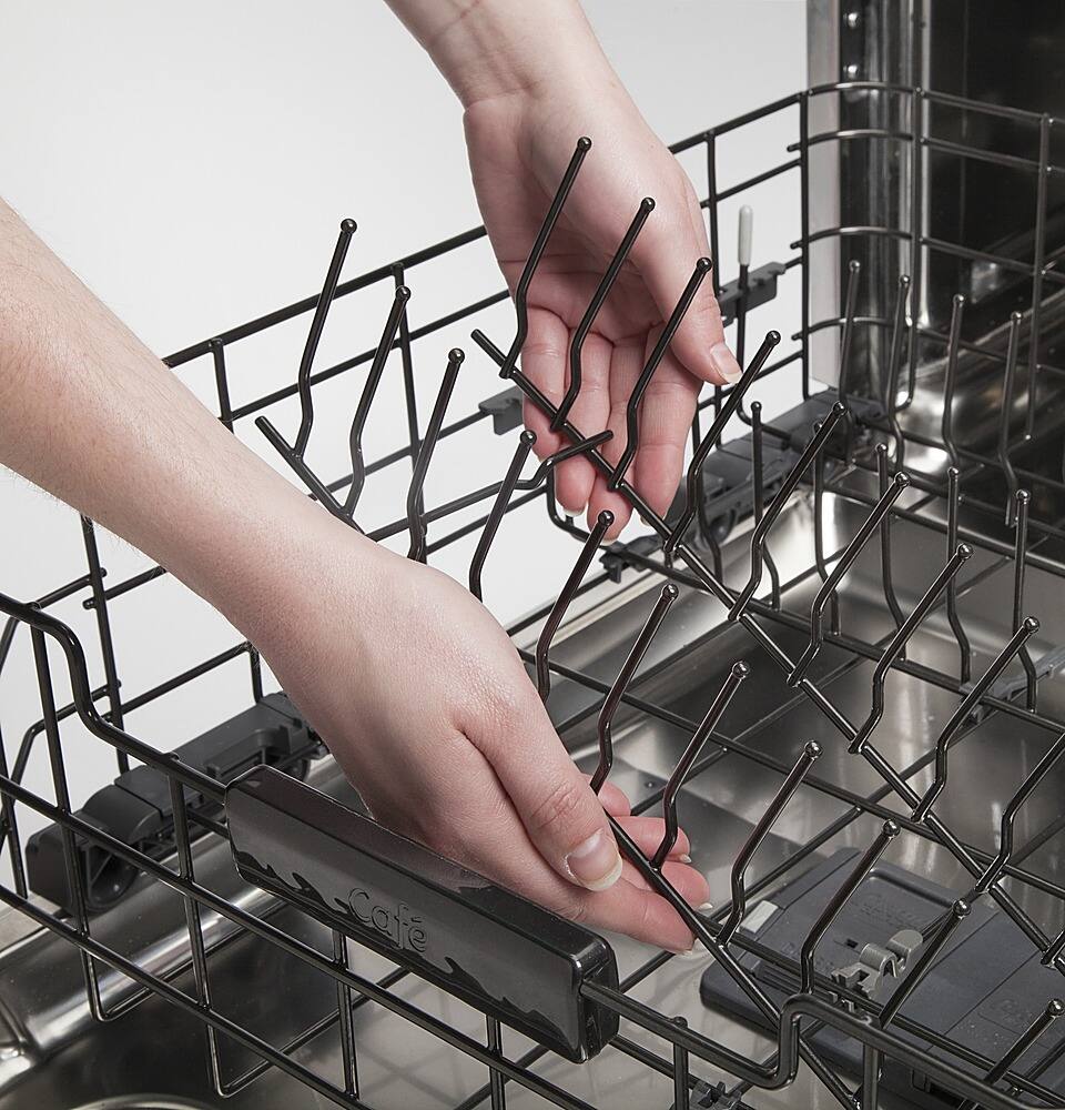 A:Answer Hi Birdland- This is Sue at GE Appliances. We are excited to hear of your interest! Yes, the dishwasher features a lower Wash Your Way Customizable Rack. The lower rack has removable tines that are positioned in one continuous loading direction. With most racks, the tines face opposite directions, so plates and dishes face each other in the center of the rack. With the Wash Your Way rack, plates face in one continuous direction versus changing direction in the center. Align the tines to fit your best loading direction based on which side of the sink the dishwasher is located. The tines can also be completely removed to create a 100% flat loading space, perfect for large cookware items such as stock pots. Remove just one row or both rows of tines. Thanks for checking with us!