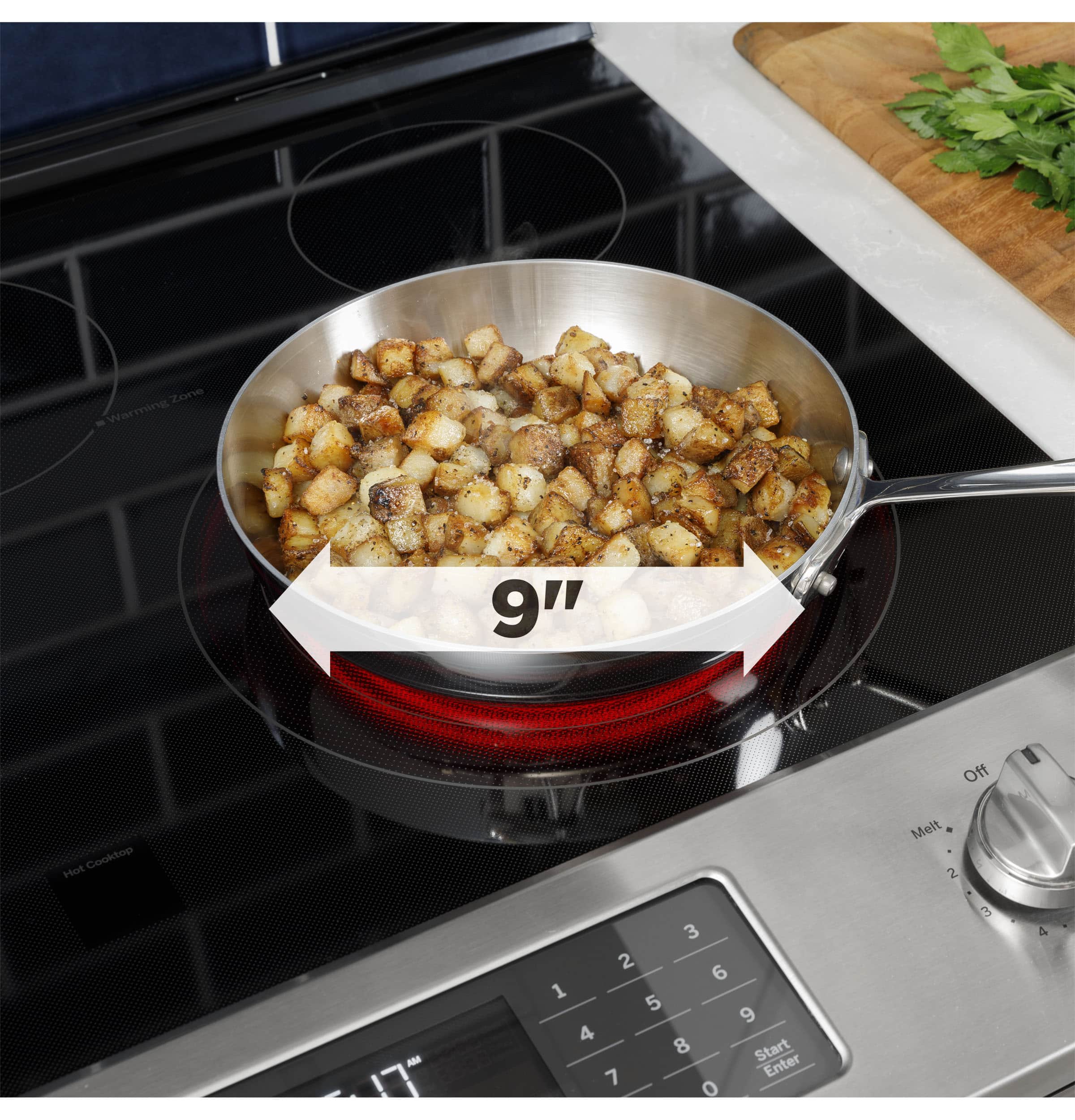 A:Answer Hi Snow- GE ranges meet all standards set by the Underwriters Laboratories (UL). UL evaluates external temperature limitations for ranges. The front and sides of a range can vary from 152 to 212 degrees F., depending on the materials. There are currently no temperature limitations for the horizontal surface, or cooktop, of a range. The actual burner area and area directly under the cookware will be hotter than the surrounding areas. When the glass around each burner goes above 150 degrees F, the Hot Surface Light will come on to remind you that the surface is hot. After the unit is turned off, the light will remain on until the area around the burner has cooled to below 150 degrees F. This usually takes about twenty minutes. We hope this is helpful. You'll love your color choice. Slate appliances blend with today's premium kitchen materials. The rich matte appearance naturally hides fingerprints and smudges to maintain its beauty. Lear more about our Slate Appliances at: http://www.geappliances.com/ge/slate-appliances.htm - Thanks for considering GE Appliances for your home! SUE@GEA