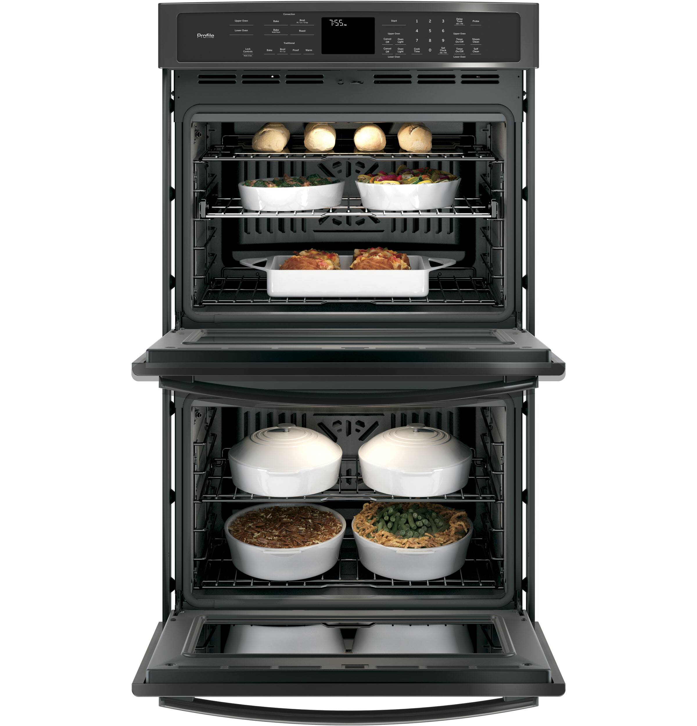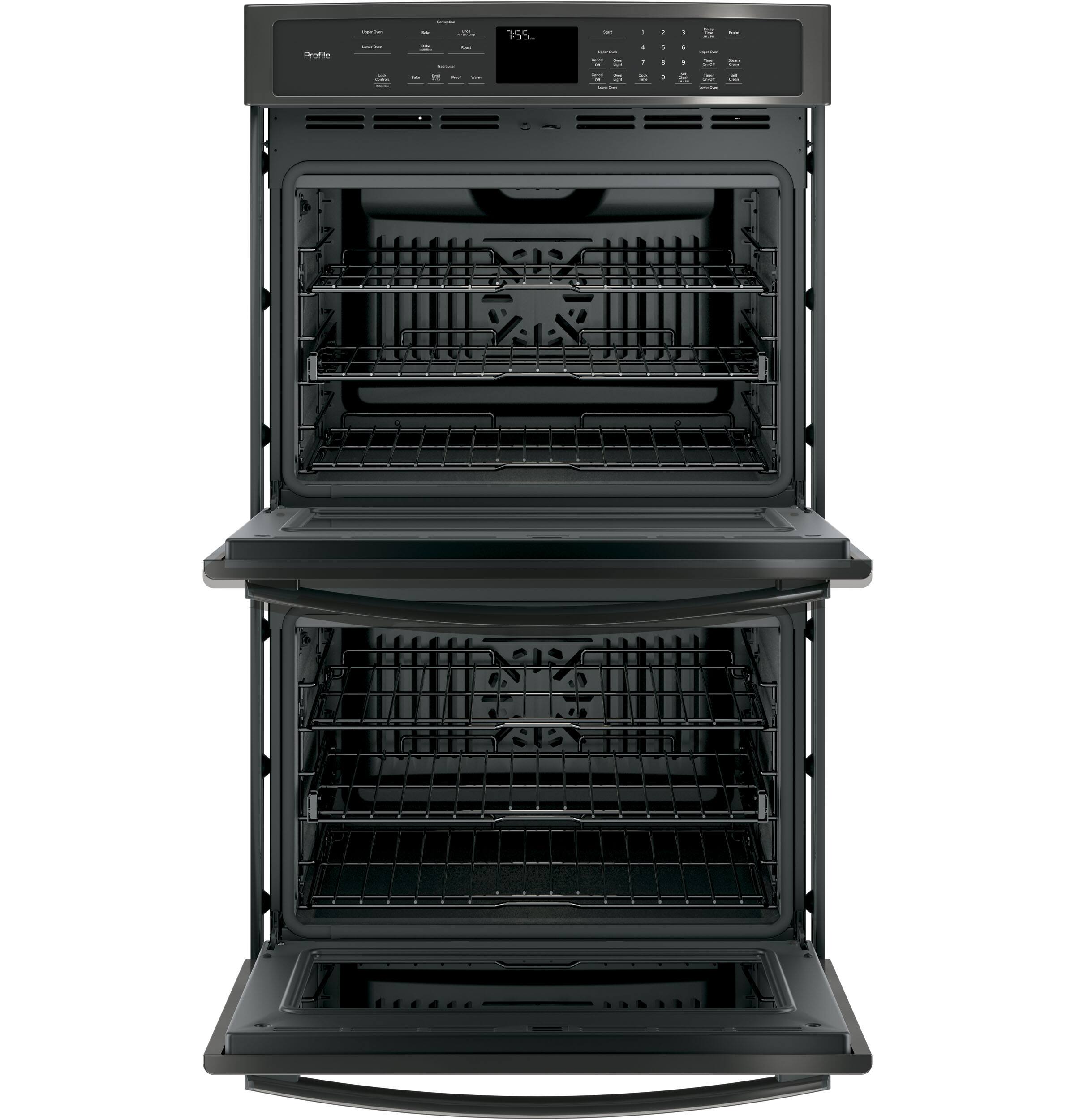 The main two differences between the two double wall ovens is that the PT9550SFSS has two convection ovens, whereas only the upper oven is convection in the PT7550SFSS. Also, the PT9550SFSS has the Notification Lighting, which is a status LED light bar tucked away between the top of the oven door and the underside of the control panel and serves two distinct purposes.
