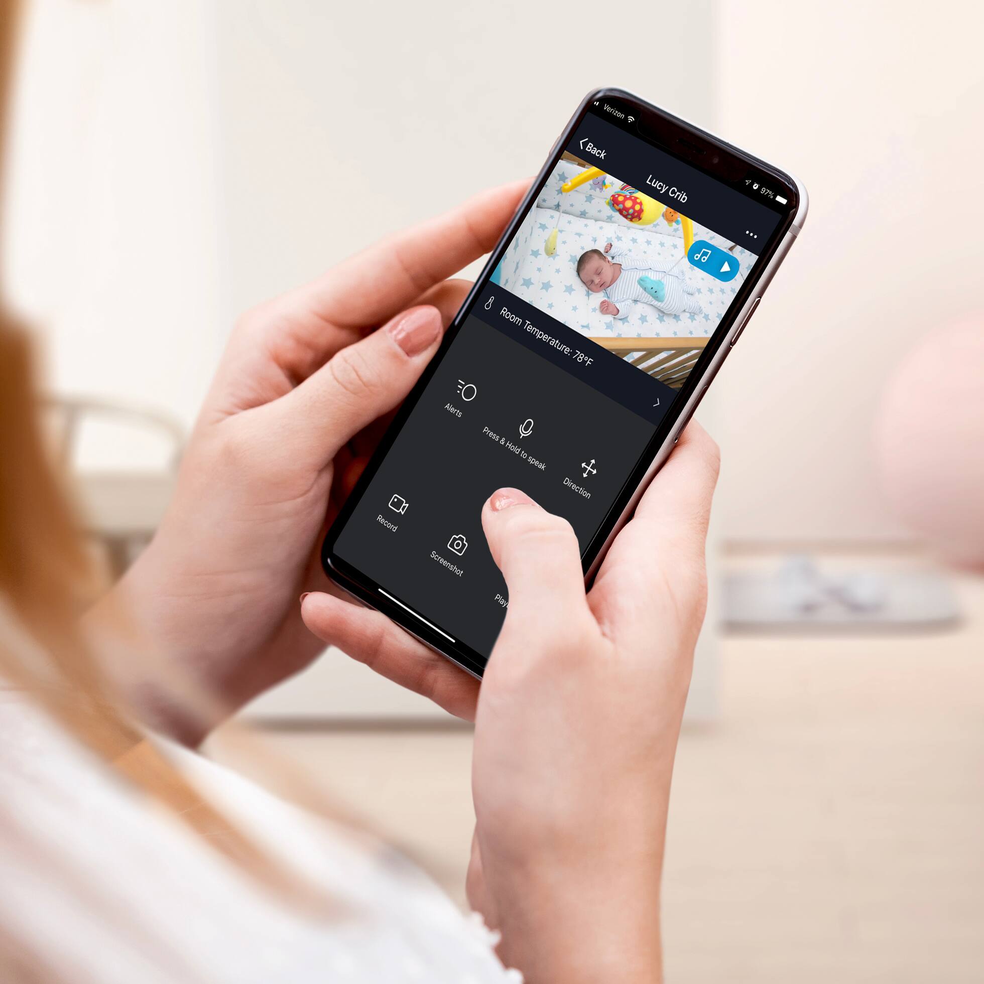 A:AnswerHi, I'm glad that you raise this over to us. When you watch the camera, just tap the music icon and you can select your lullaby sound. We would love to discuss this with you, please contact us via email at [email protected], or call us at +1 (888) 232-3143, from Monday - Sunday 10:00AM to 7:00PM EST.