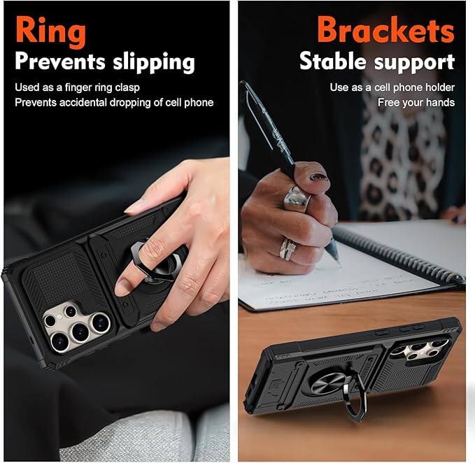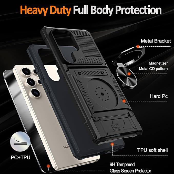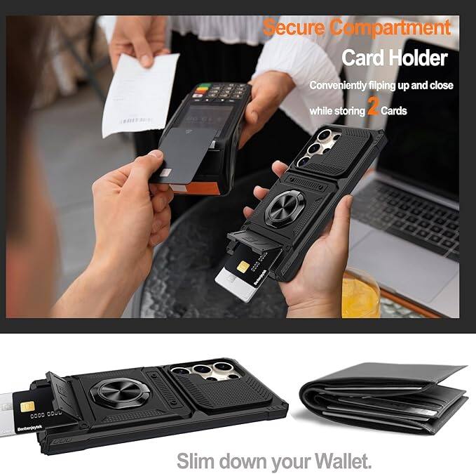 Gravity Ridge - for Samsung Galaxy S25 Ultra Wallet Case with Card Holder 360°Ring Kickstand Military Grade Drop Shockproof Rugged Case - Black