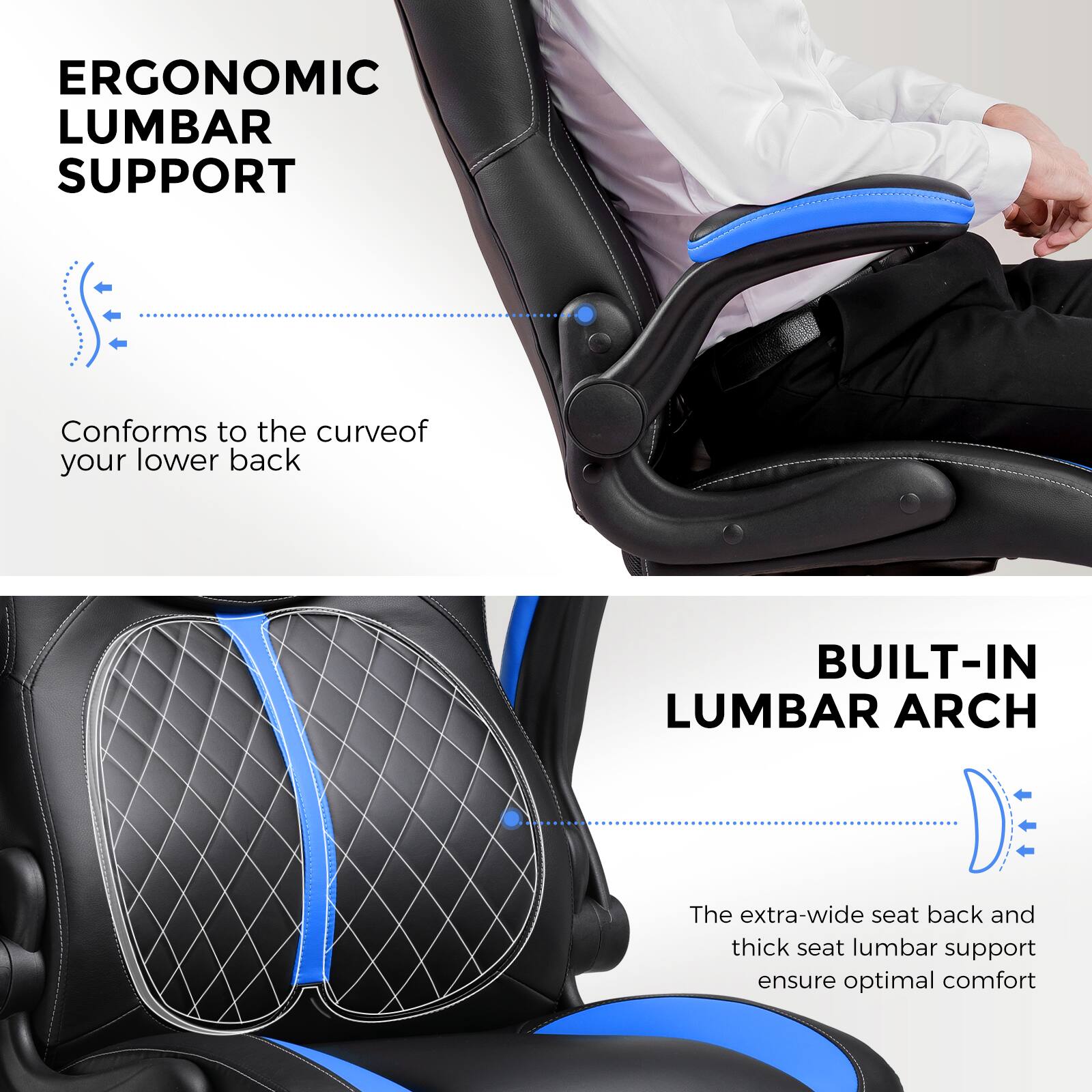 - A:Answer Yes, the chair is designed with ergonomic features, including built-in lumbar support and a high back.