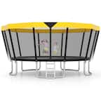 [Image of a child playing in a trampoline with a net enclosure]
