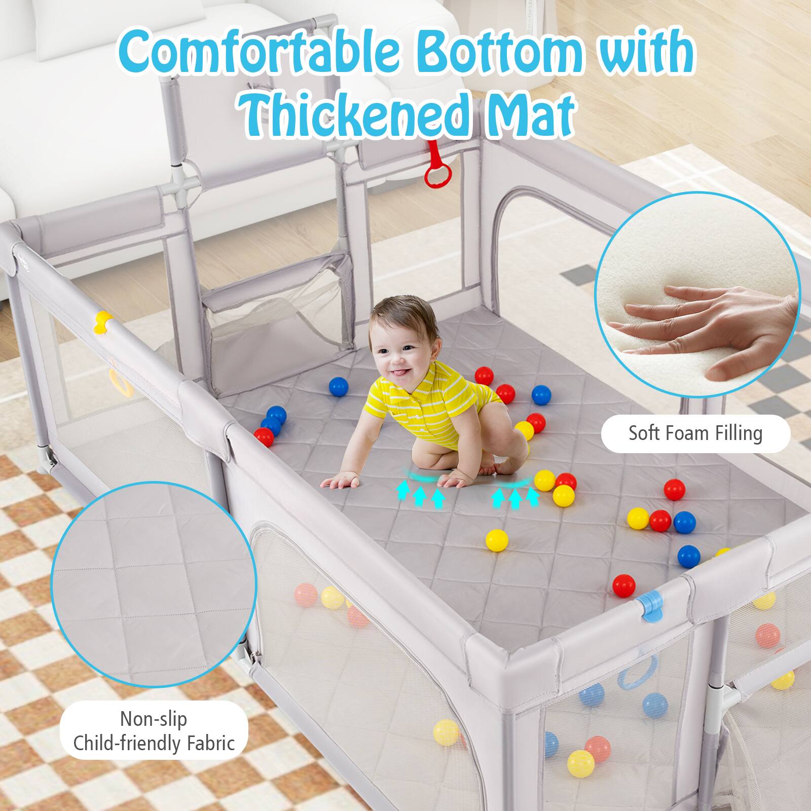 Gymax - 81'' x 57'' Extra Large Playpen for Babies & Toddlers w/Basketball Hoop - Gray