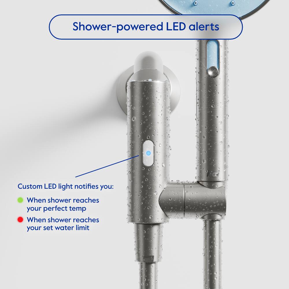 This question and answer was generated by AI based on customer and product data.QuestionWhat kind of customizable LED alerts does the showerhead provide, and how do they help users manage their water usage?